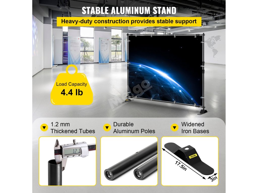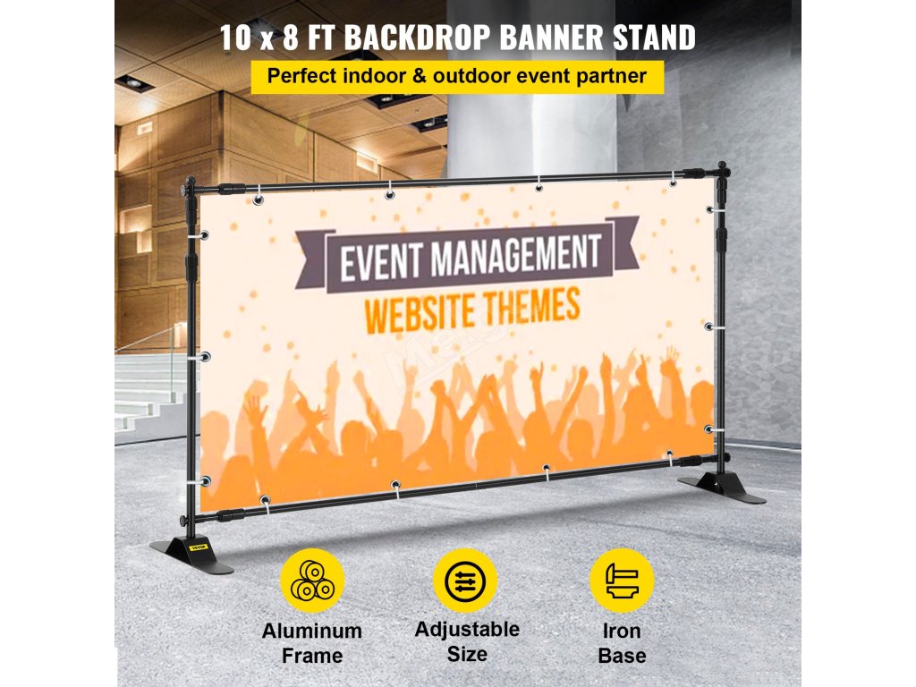 Díky odolnému hliníkovému rámu je tento stojan na bannery 8×8 robustní a odolný proti korozi pro dlouhodobé používání. Zesílené tyče jsou navíc účinné proti větru při venkovním použití.