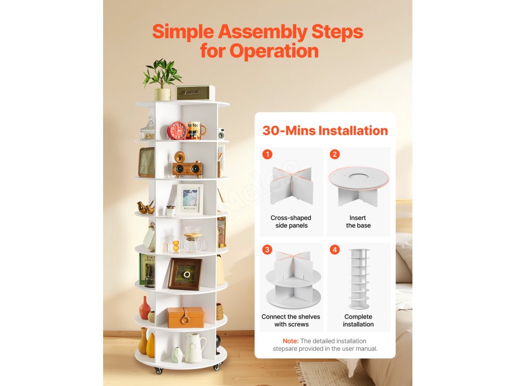 Díky svému minimalistickému vzhledu a 2 klasickým barevným variantám se otočný botník hodí do domácích předsíní, šatních skříní, koutů ložnic i do prodejen obuvi a showroomů obchodních center - kombinuje úložný prostor a dekoraci. Včetně ilustrovaného návodu a kompletního příslušenství se snadno instaluje.