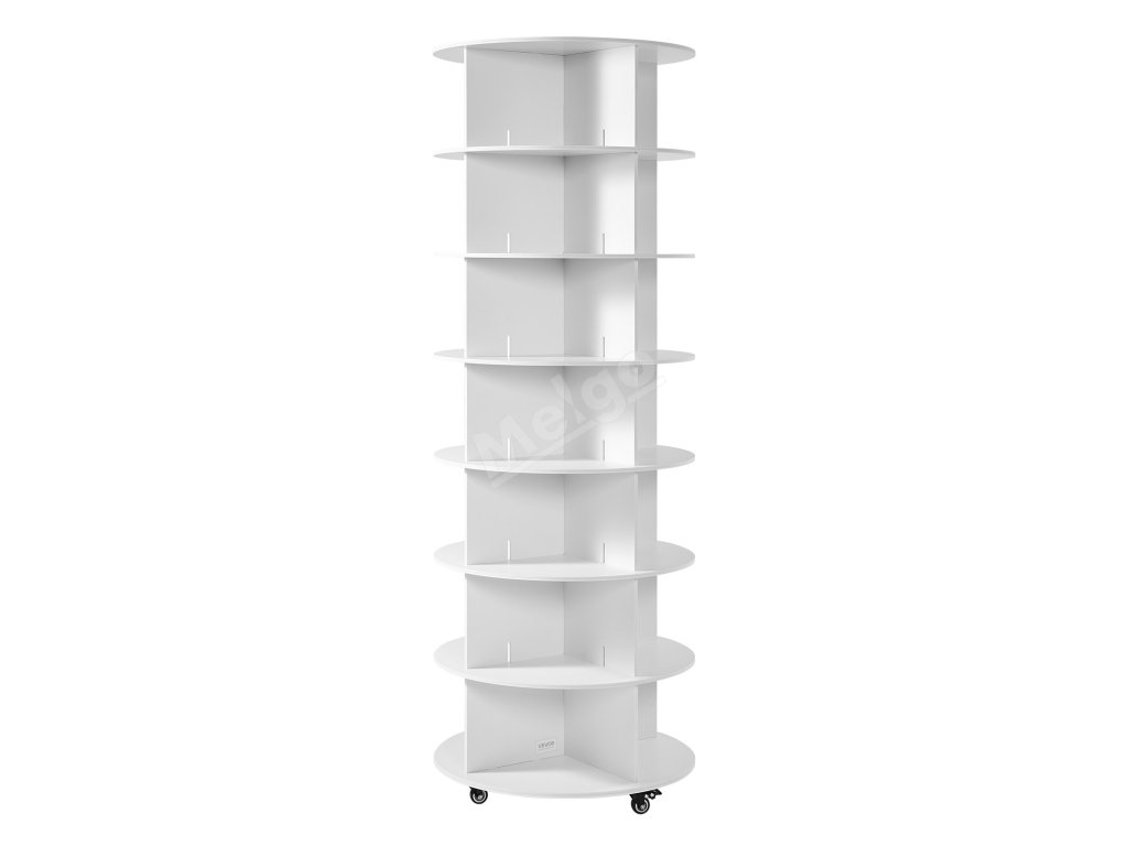 Otočná věž na boty je vyrobena v kulatém/válcovém provedení s malými rozměry, takže se vejde do kompaktních prostor, například do rohu. Kromě bot do ní lze uložit také tašky, klobouky, šály, CD, knihy, rostliny v květináčích atd. Ideální pro domácí skladování a vystavení v obchodě.