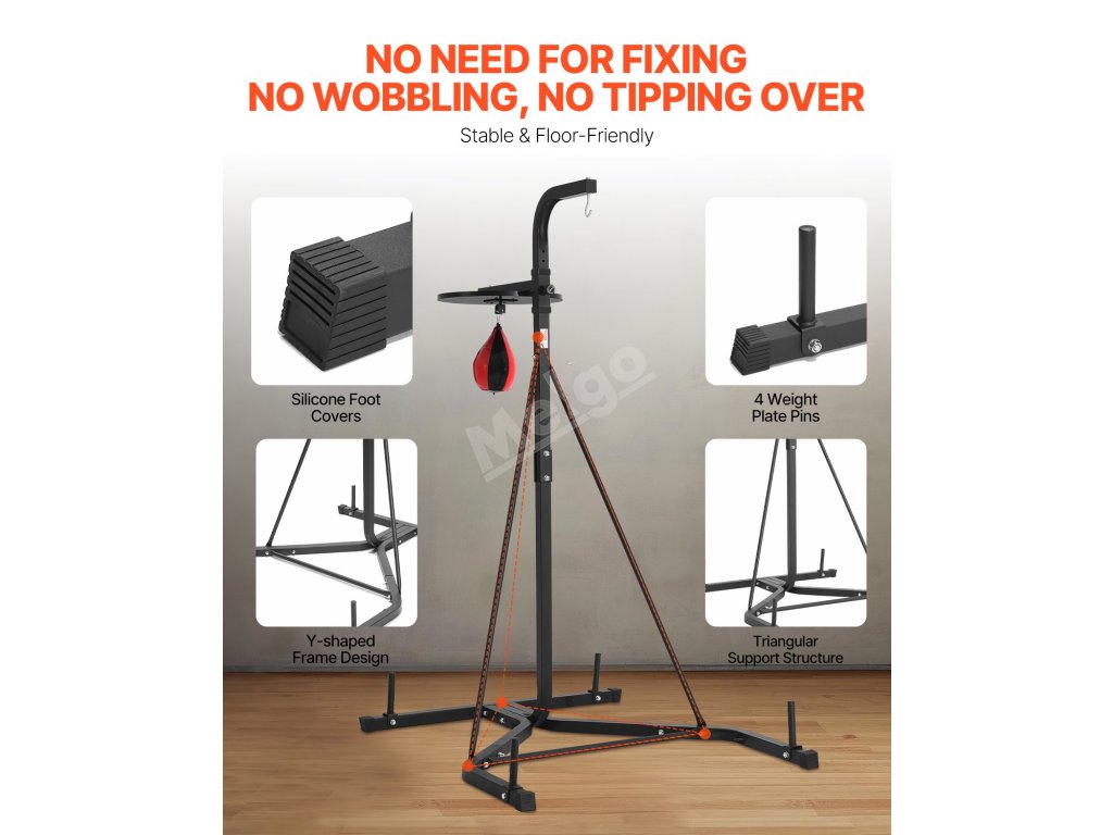 Výhodou stojanu na boxovací pytel je jeho hmatová zpětná vazba. Umožňuje nácvik úhybných manévrů a práce nohou a simuluje skutečný boj. Pokud chcete snížit amplitudu kývání boxovacího pytle, můžete se rozhodnout pro model se závažím.