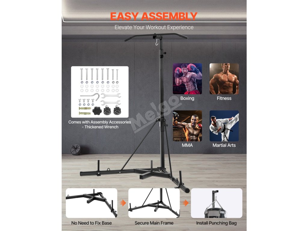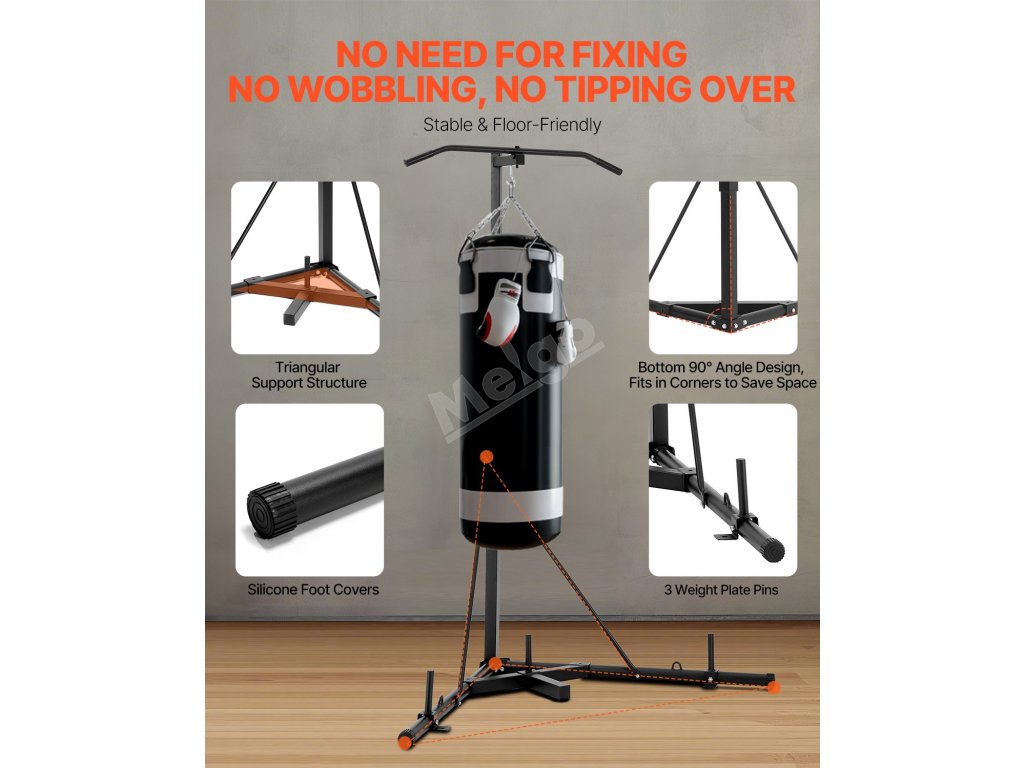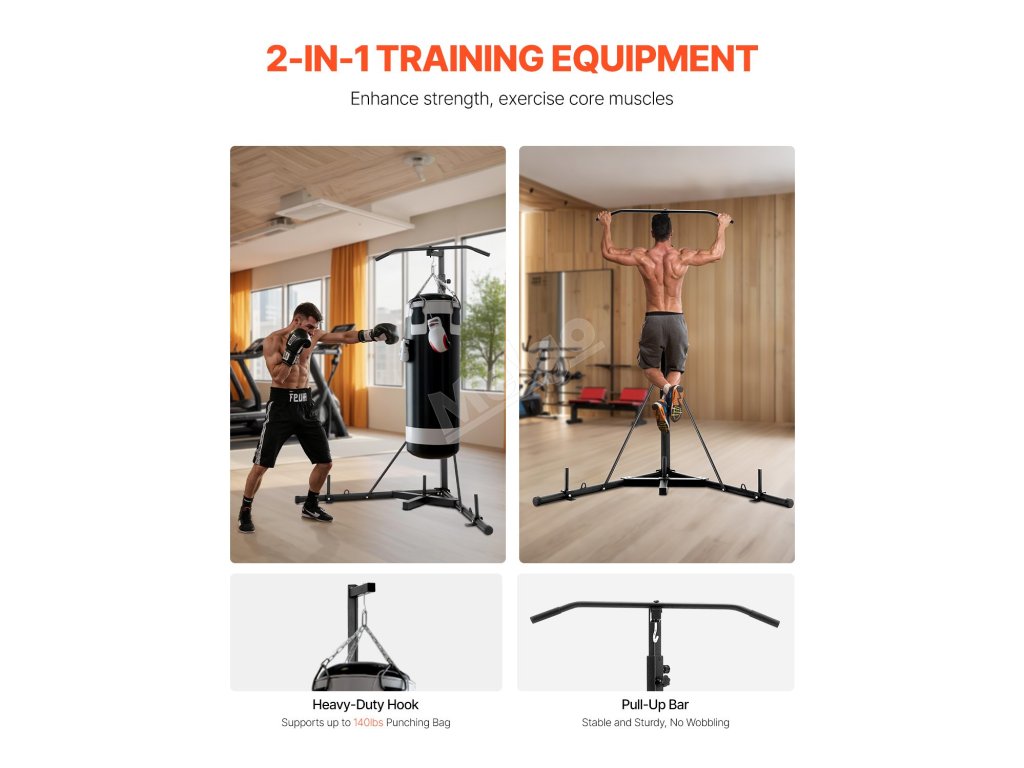 Stojan na boxovací vak 2v1 ocelový s hrazdou nastavitelný 140 lbs