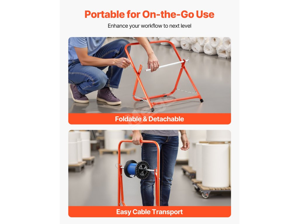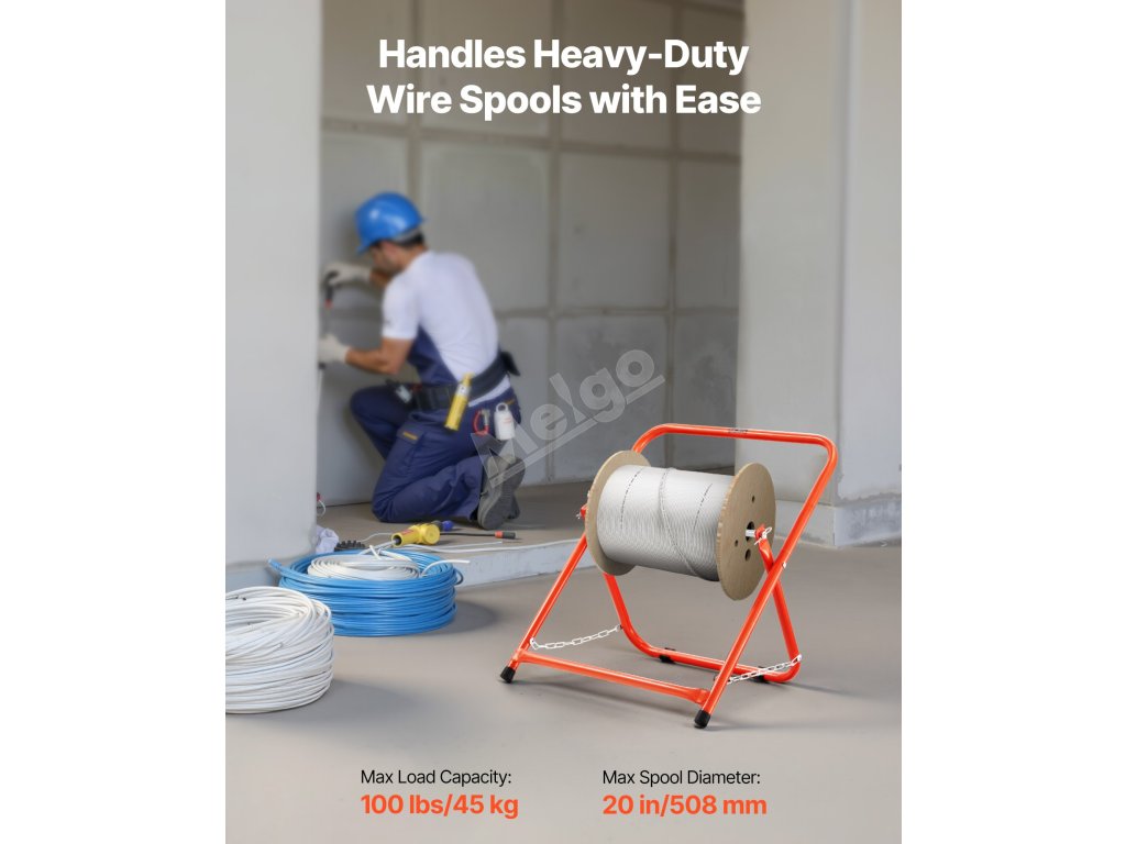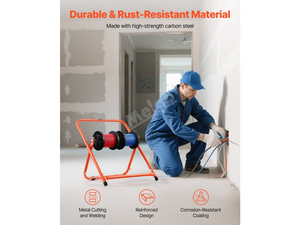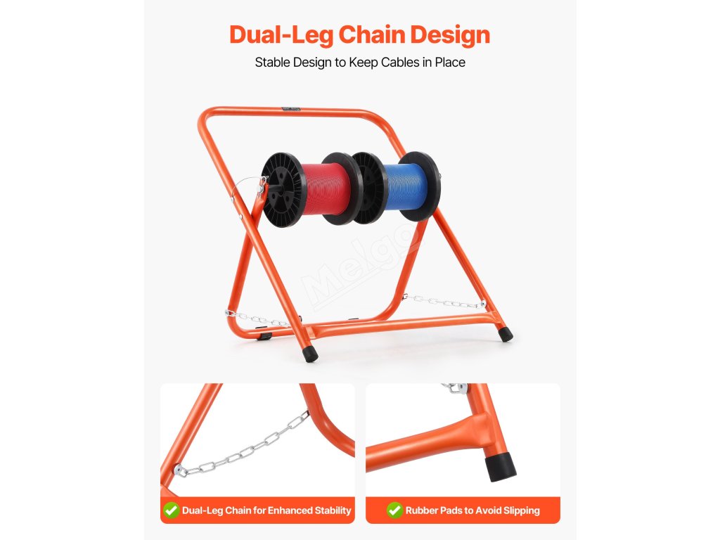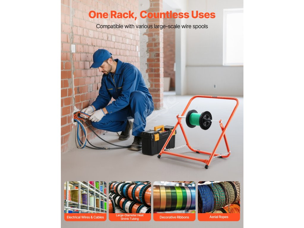 Tento drátěný zásobník je vyroben z odolné ocelové trubky Q195 a unese až 100 kg. Jeho skládací konstrukce usnadňuje skladování a přepravu a pojme až 20 cívek o průměru. Práškově lakovaná povrchová úprava poskytuje estetický vzhled a odolnost proti korozi, takže se skvěle hodí pro vedení kabelů.