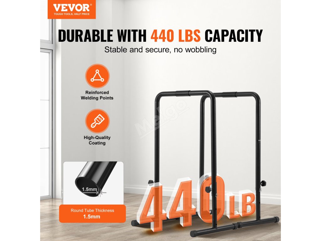 Stojan na dipy, paralelní tyče, nosnost 440 lbs, nastavitelná výška