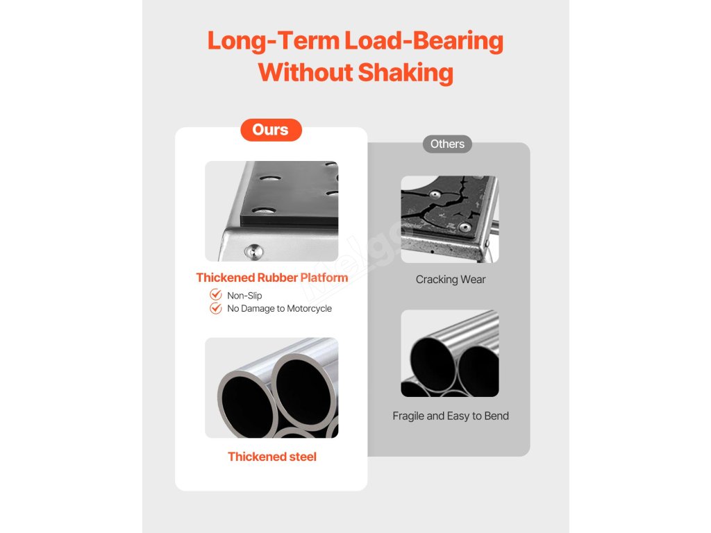 Tento motokrosový stojan je vyroben ze zesílené oceli, což výrazně zvyšuje jeho nosnost a odolnost, takže je ideální pro těžké motocykly a zajišťuje dlouhodobé používání bez deformací a poškození.
