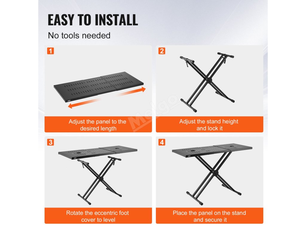 Není potřeba žádné nářadí! Náš přenosný DJ stůl se snadno skládá pomocí hladkých konektorů, takže nastavení a přeprava jsou na každé akci bezproblémové.