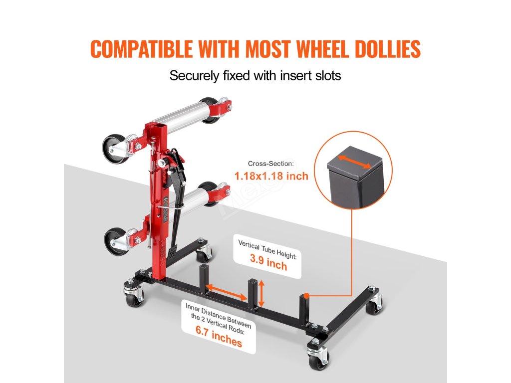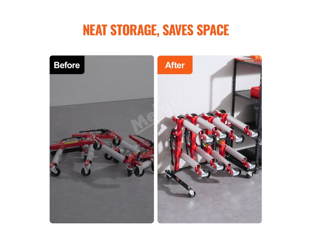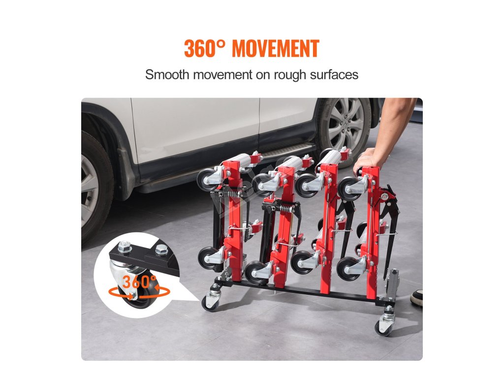 Díky kolečkům otočným o 360° se vozík za vozidlo může hladce pohybovat v jakémkoli prostředí a na různých površích, ať už jde o úzkou garáž nebo prostorný sklad, asfalt nebo dlažbu.