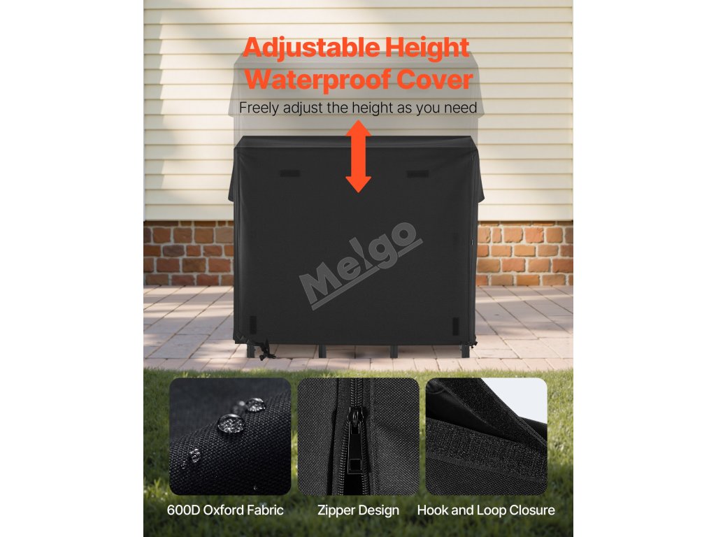Tento těžký regál na palivové dřevo unese až 400 kg a pojme až 1/4 šňůry palivového dřeva. Je vybaven vodotěsným a UV záření odolným krytem, který odolá slunci, dešti i sněhu. Tento regál je ideální na verandy, zahrady, terasy a další místa, kde udrží palivové dřevo v suchu, dobře větrané a kdykoli připravené k použití.