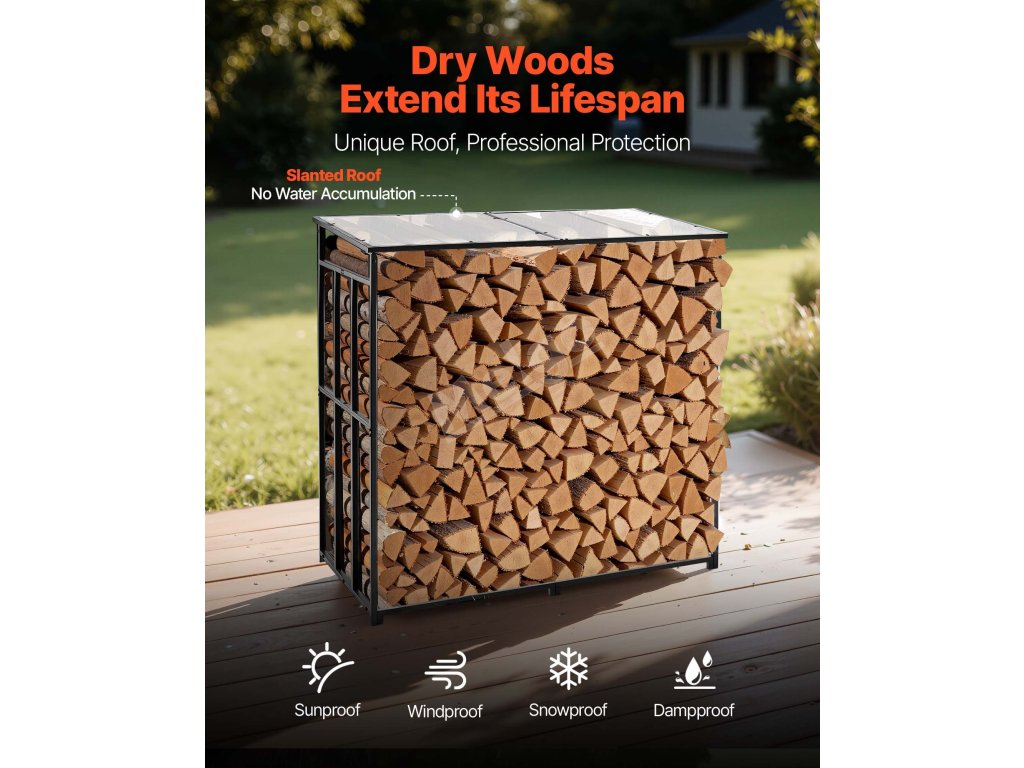 4ft venkovní stojan na palivové dřevo se střechou odolnou proti povětrnostním vlivům