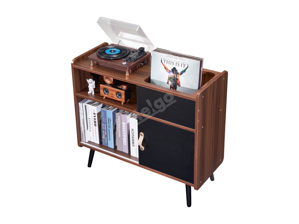 Stojan na gramofon s elektrickou zásuvkou, až 350 desek, hnědý
