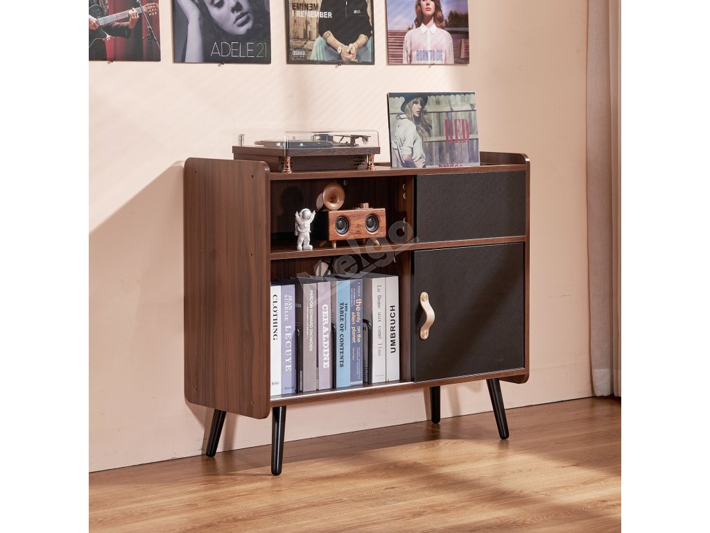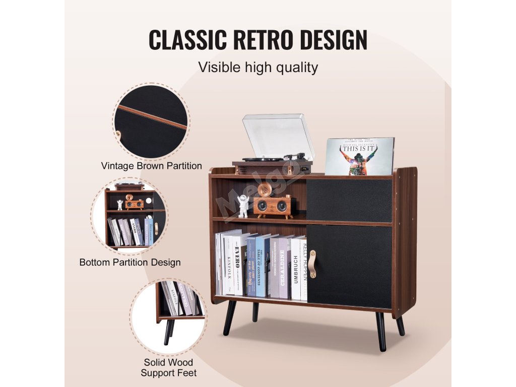 Hnědé panely v historickém stylu nejen zvyšují estetický dojem, ale také poskytují pevnou oporu, která unese až 150 kg. Tento vintage stojan na gramofon nabízí pevnou oporu pro váš gramofon a zároveň dodá vašemu prostoru elegantní nádech.