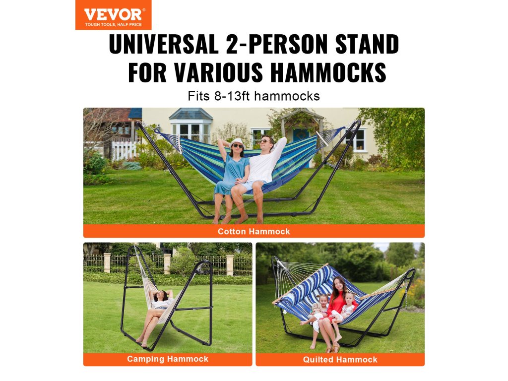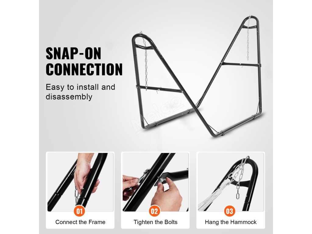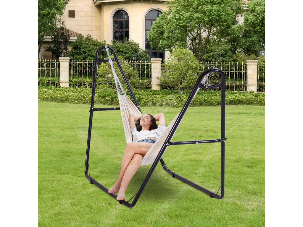 Náš venkovní stojan na houpací sítě je vhodný pro jednoduché a dvojité houpací sítě o délce od 7,5 do 12,8 stop (2,3 až 3,9 m), ideální pro osobní relaxaci nebo odpočinek s blízkými. Je vhodný pro různé typy houpacích sítí včetně brazilských, zakřivených a houpacích sítí s rozpěrnou tyčí.