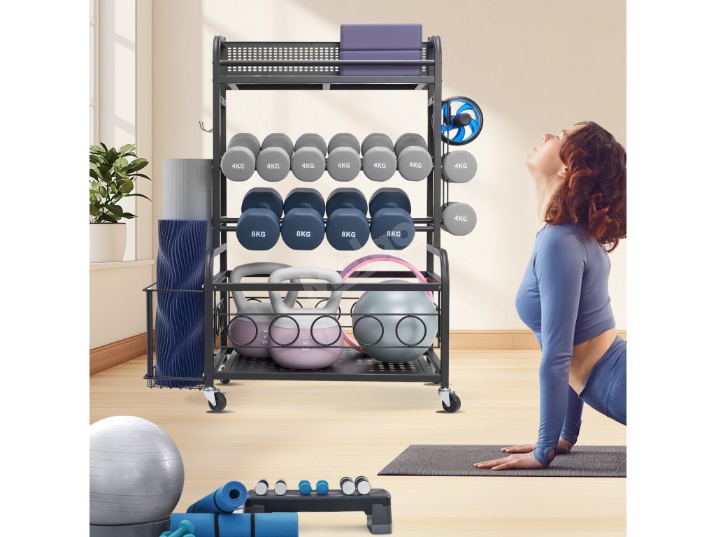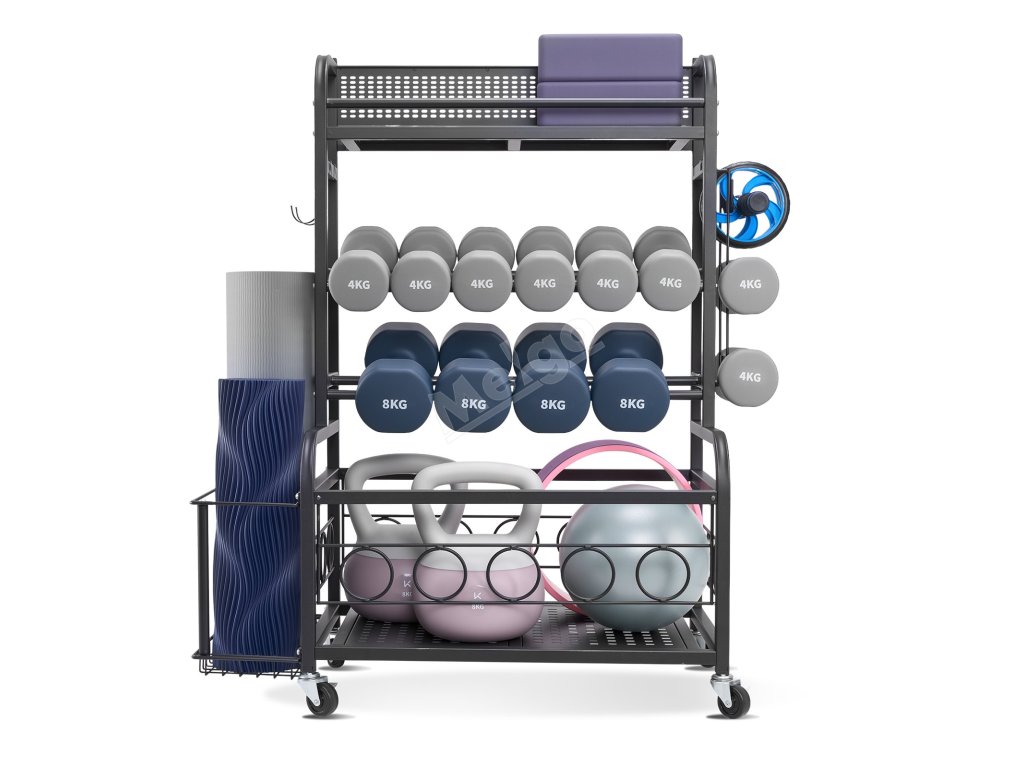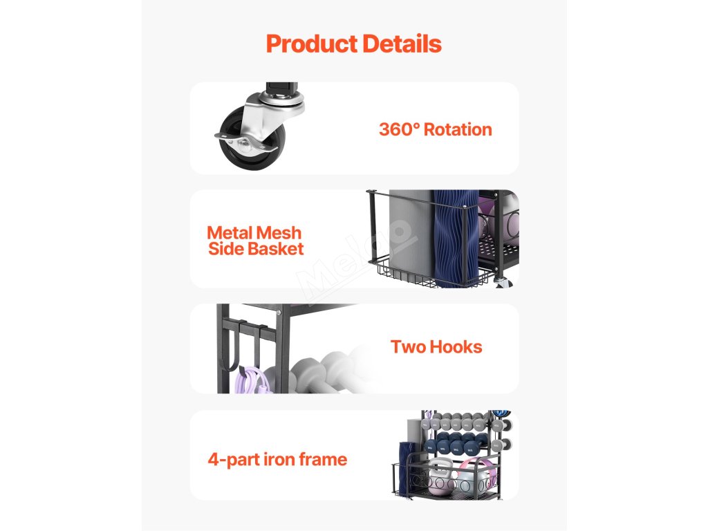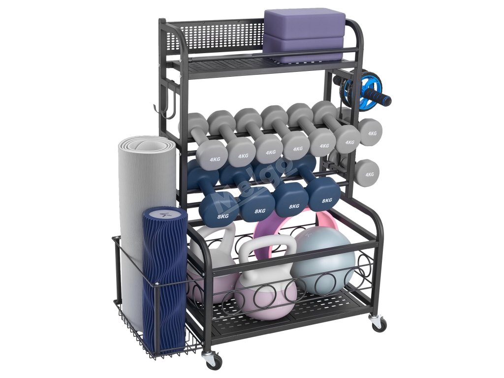 Tento držák na podložku na jógu s různými přihrádkami a způsoby ukládání maximalizuje úložnou kapacitu vašeho cvičebního vybavení a usnadňuje přístup k položkám ve spodní části. Je vybaven čtyřmi robustními 360stupňovými kolečky (dvě jsou uzamykatelná), která splňují vaše požadavky na mobilitu a stabilitu.