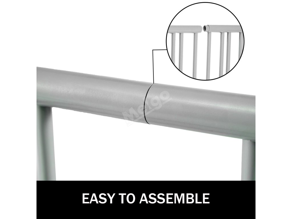 Tento stojan je oboustranný s dostatečnou vzdáleností mezi jednotlivými trubkami pro pohodlné parkování jízdních kol. Pojme celkem 10 jízdních kol, což vám umožní ušetřit místo a udržet si pořádek v prostoru.