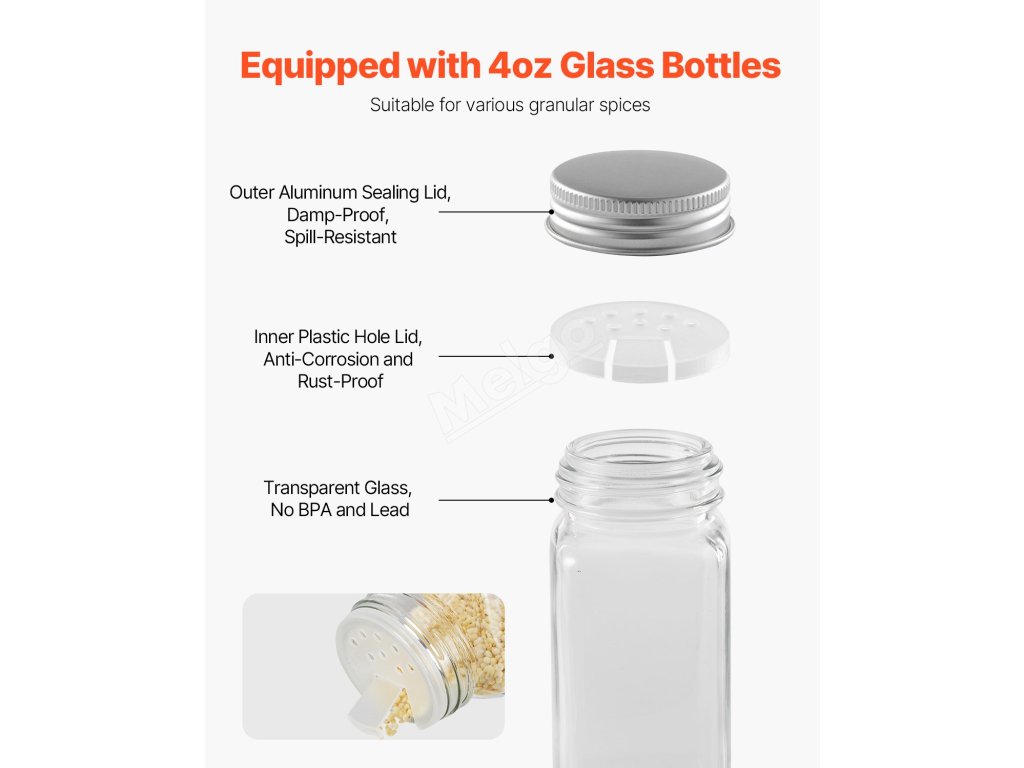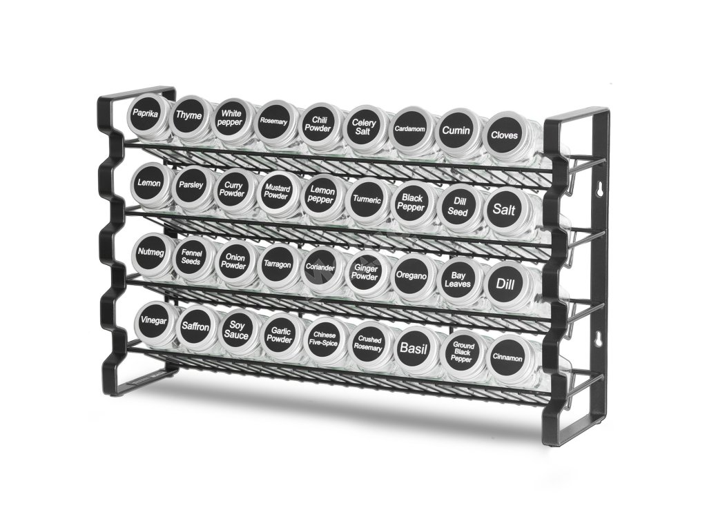 Stojan na koření s 36 dózami, víčky, nálepkami, nálevkou 18×11 in