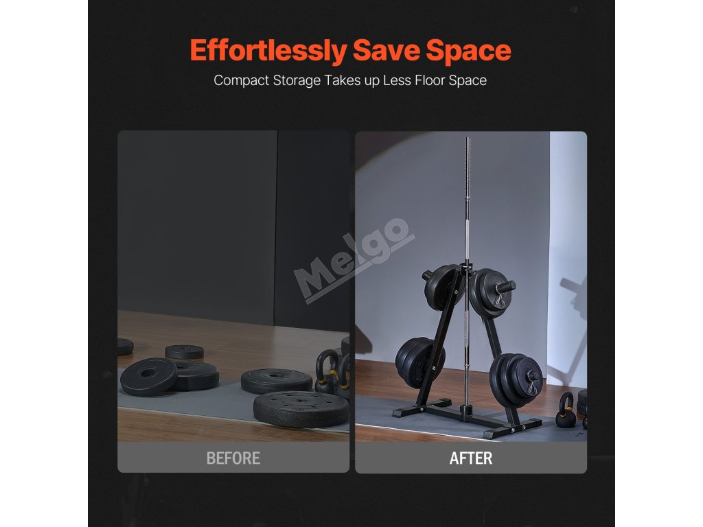 Tento multifunkční stojan na zátěžové desky maximalizuje využití prostoru díky své kompaktní konstrukci. Ať už se nachází v přeplněné garáži nebo v plánované domácí posilovně, efektivně využije každý centimetr a zajistí přehledné a organizované prostředí pro cvičení.