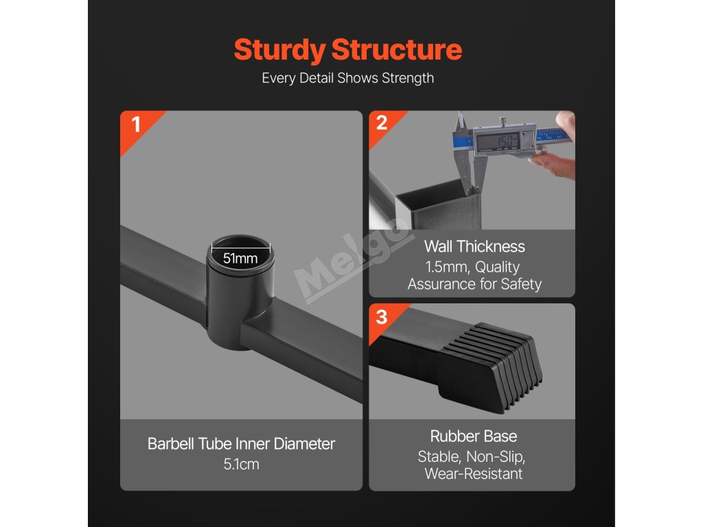 Díky použití technologie úplného svařování má tento stojan na činky do domácí posilovny bezešvé spoje, které výrazně zvyšují celkovou pevnost a stabilitu konstrukce. Vysoce kvalitní materiály zaručují odolnost stojanu.