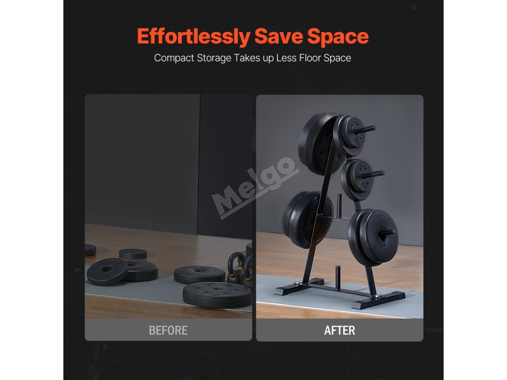 Tento multifunkční stojan na zátěžové desky maximalizuje využití prostoru díky své kompaktní konstrukci. Ať už se nachází v přeplněné garáži nebo v plánované domácí posilovně, efektivně využije každý centimetr a zajistí přehledné a organizované prostředí pro cvičení.