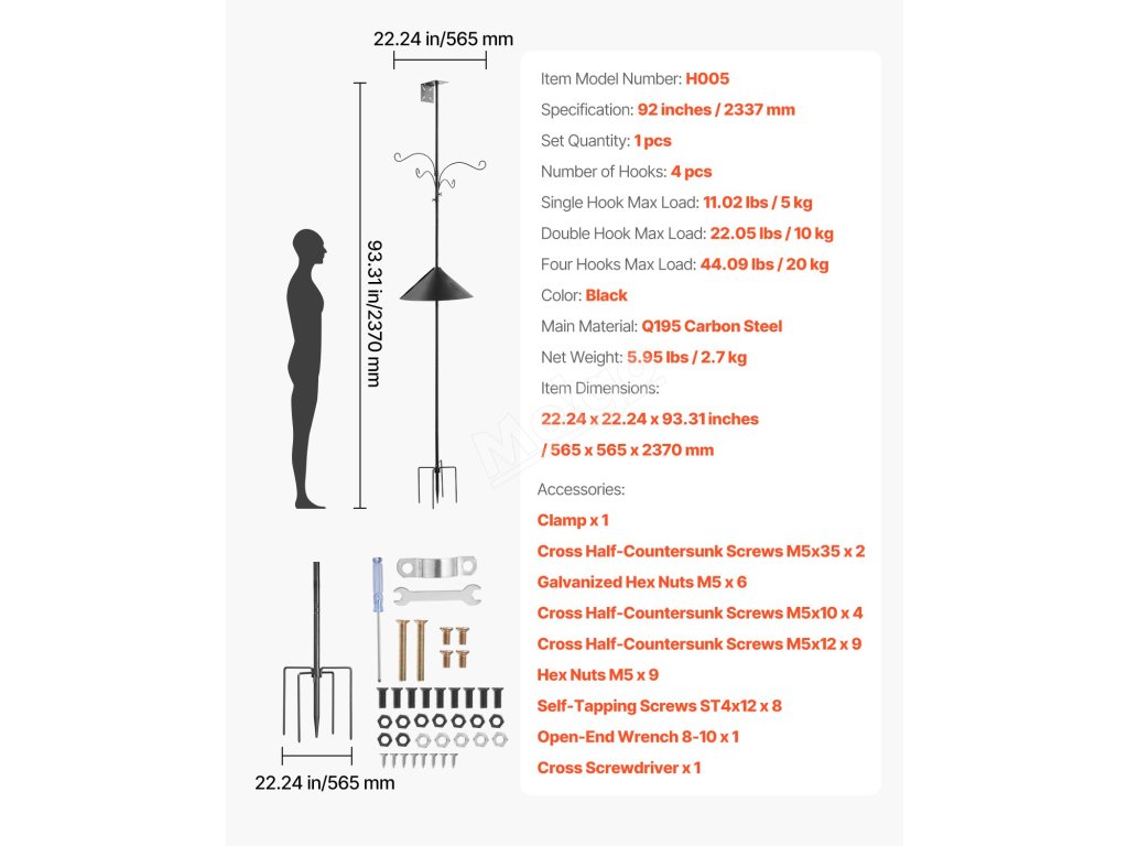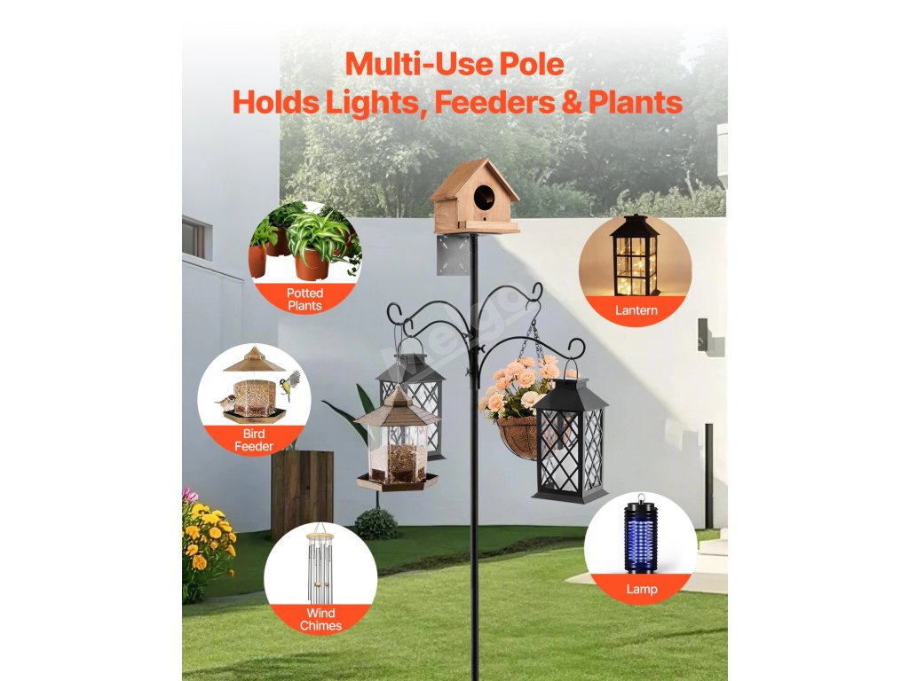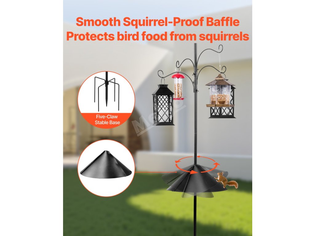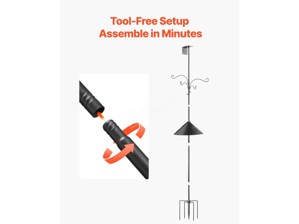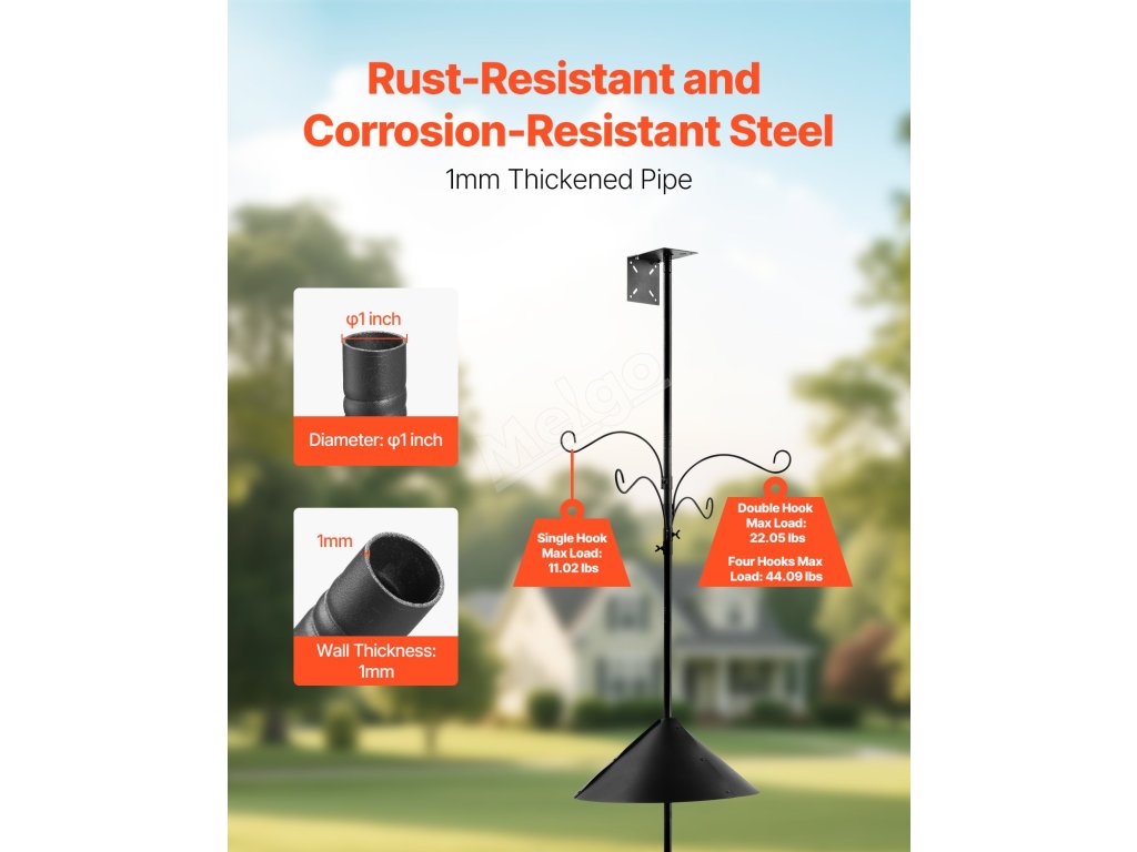Tato tyč na krmítko pro ptáky je vyrobena ze silné oceli odolné proti korozi a je odolná a pevná. Její stabilní základna zaručuje, že zůstane ve vzpřímené poloze i za větrného počasí, a vy tak budete mít klid. Všestranný design vyhoví všem vašim venkovním dekorativním potřebám.