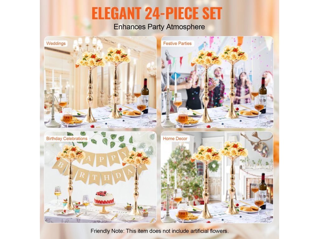 Stojan na květinová aranžmá 24 ks, kovový zlatý, 50cm/19.7”