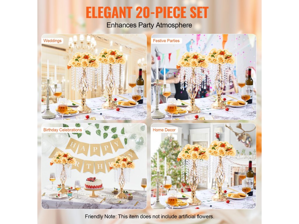 Vezměte prosím na vědomí, že tato svatební váza není dodávána s umělými květinami ani jinými dekorativními předměty; ty je třeba zakoupit zvlášť.