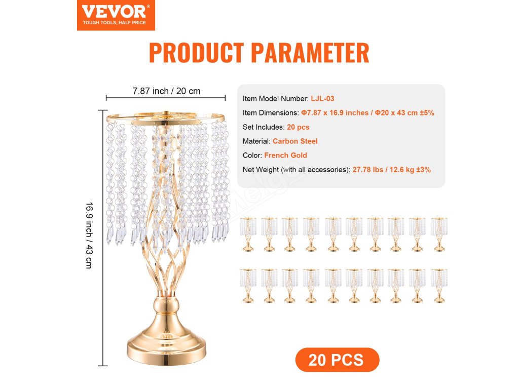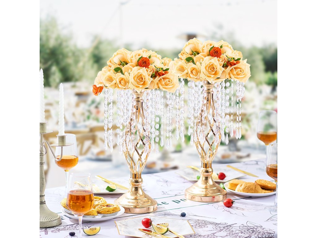 Stojan na květiny 20 ks kovový, výška 43 cm, zlatý, na svatební stoly