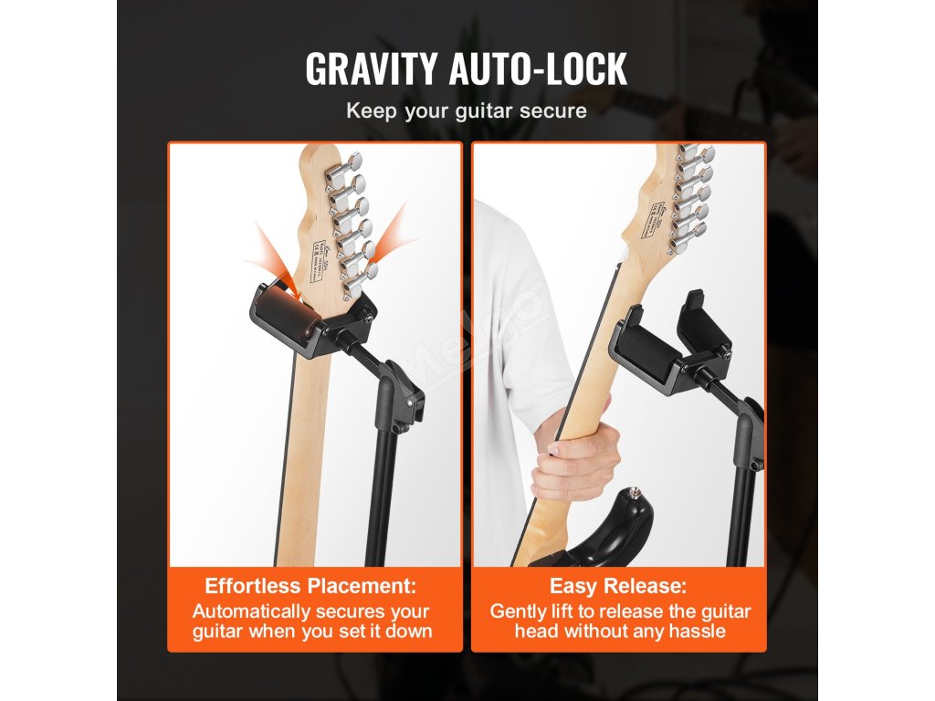 Užijte si maximální flexibilitu s naším kytarovým stojanem. Díky konstrukci s gravitačním automatickým zámkem snižuje napětí na krku kytary, zabraňuje jejímu kroucení a minimalizuje namáhání. Výšku lze snadno nastavit v rozmezí od 35,4" do 47,2" (900 - 1200 mm), což vám umožní nastavit si ideální výšku.