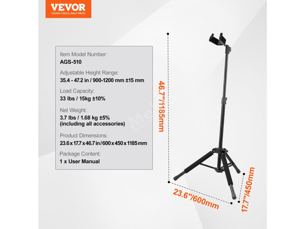 Stojan na kytaru trojnožka skládací, výška 900-1200 mm (35.4-47.2 in)