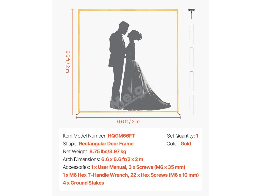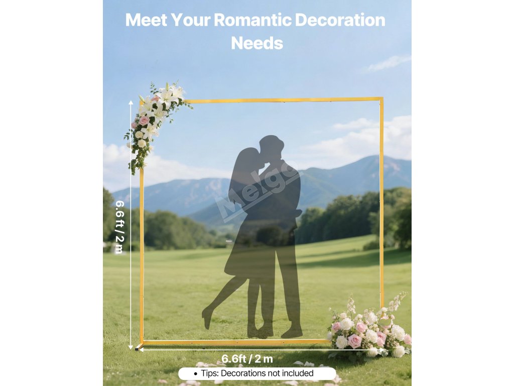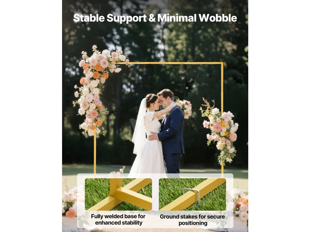 Stojan na oblouk 2×2 m, čtvercový zlatý kovový rám, pro svatby a oslavy