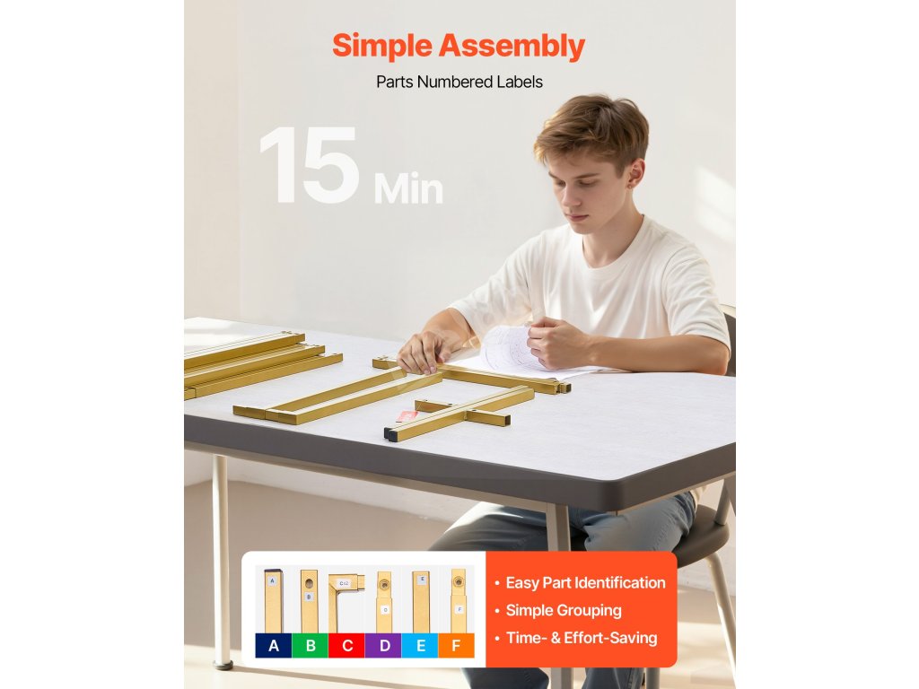 Zlaté obloukové pozadí s podrobným návodem s jasnými pokyny krok za krokem a barevnými popisky součástí snižuje náročnost montáže a pomáhá vám ji snadno dokončit.