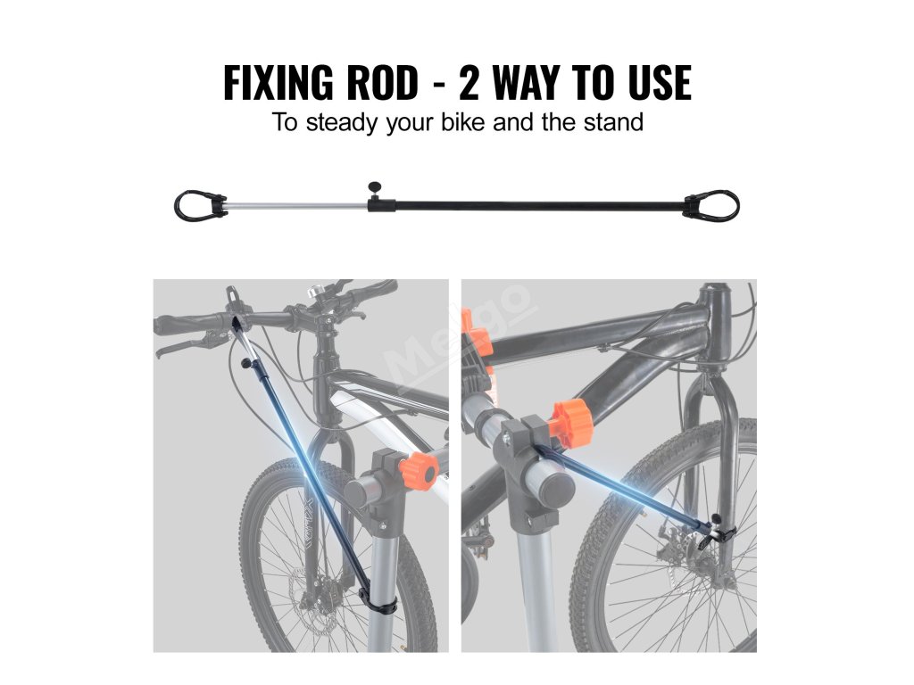 Pro další zvýšení stability při opravách byla ke stojanu na opravy kol přidána upevňovací tyč, kterou lze připevnit k řídítkům nebo přednímu kolu. To zabraňuje jakémukoli naklánění kola dopředu nebo dozadu a zajišťuje bezpečné pracovní prostředí.