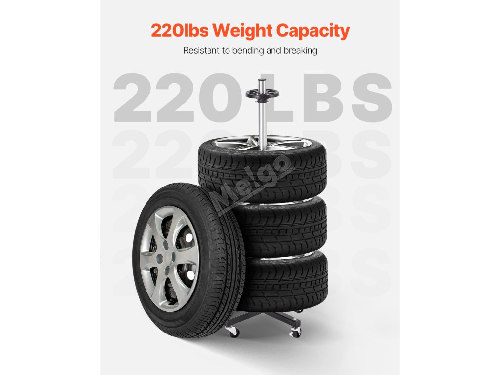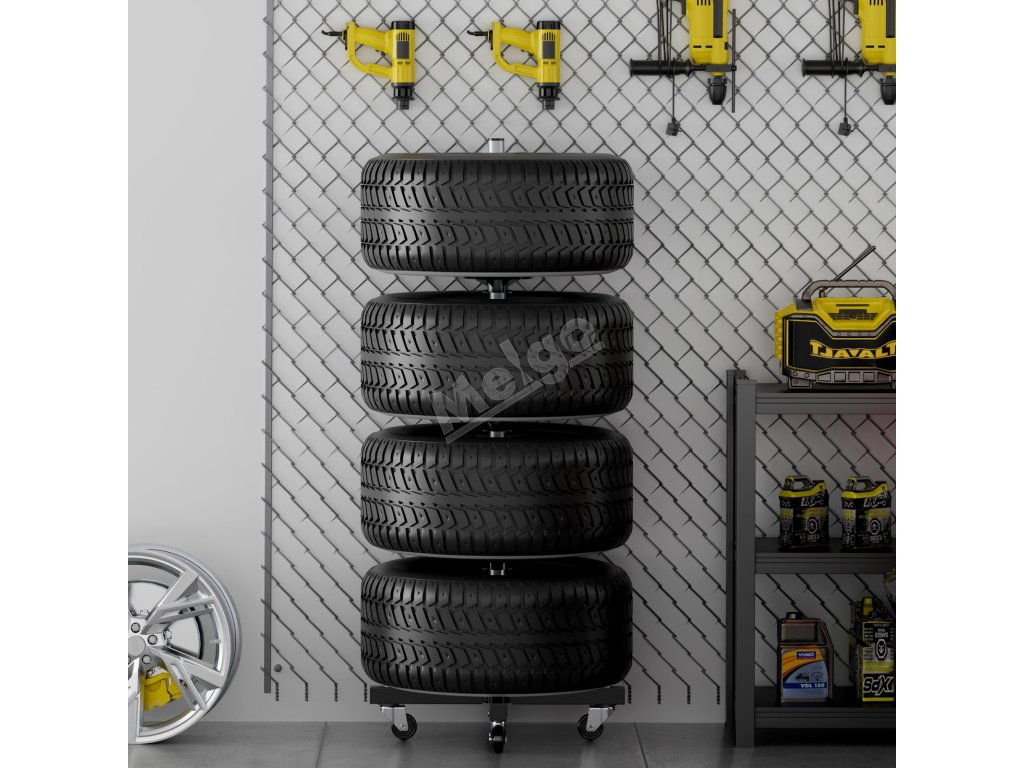 Tento nosič pneumatik na 4 kola pojme až 4 standardní pneumatiky s ráfky, přičemž se do něj vejdou pneumatiky o šířce až 225 mm (8,86 palce). Jeho robustní rám z nerezové oceli Q235 unese až 220 kg a nabízí spolehlivé a dlouhodobé skladování a zároveň šetří místo v garáži nebo dílně.