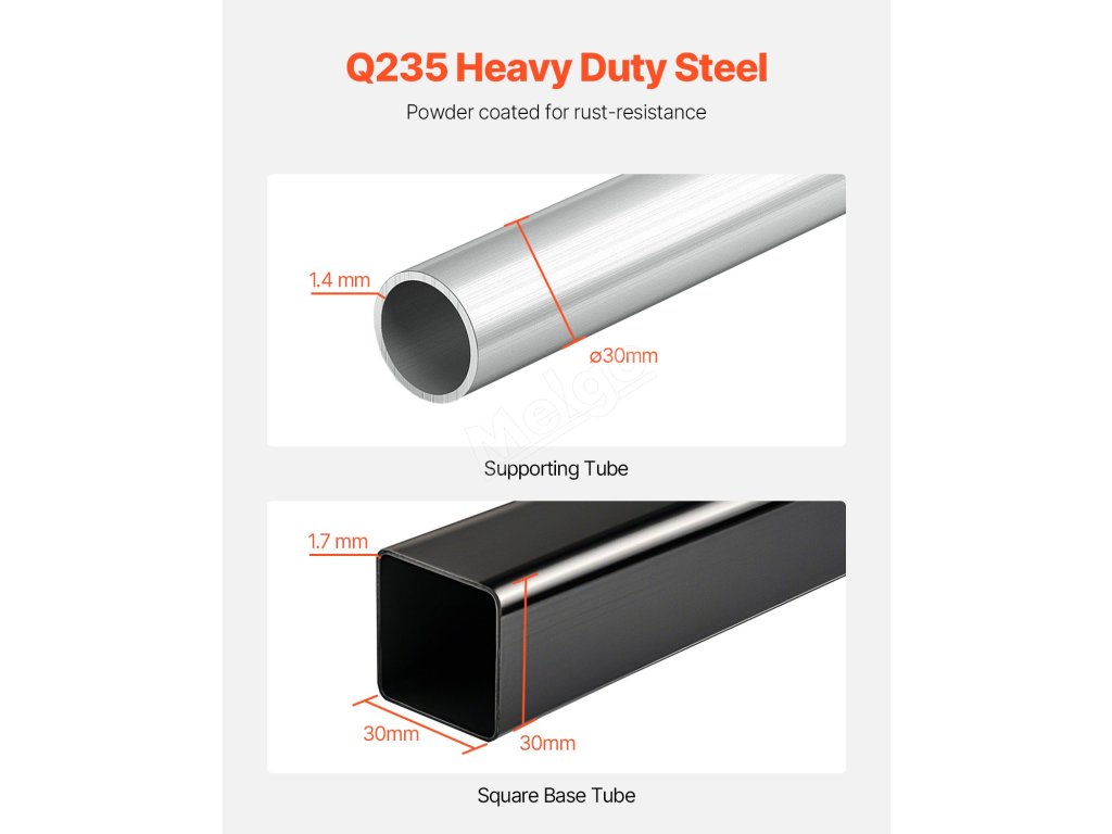 Tento stojan na pneumatiky je vyroben z robustní práškově lakované a pozinkované oceli Q235, odolává rzi a korozi a nabízí dlouhou životnost a spolehlivost pro dlouholeté používání.