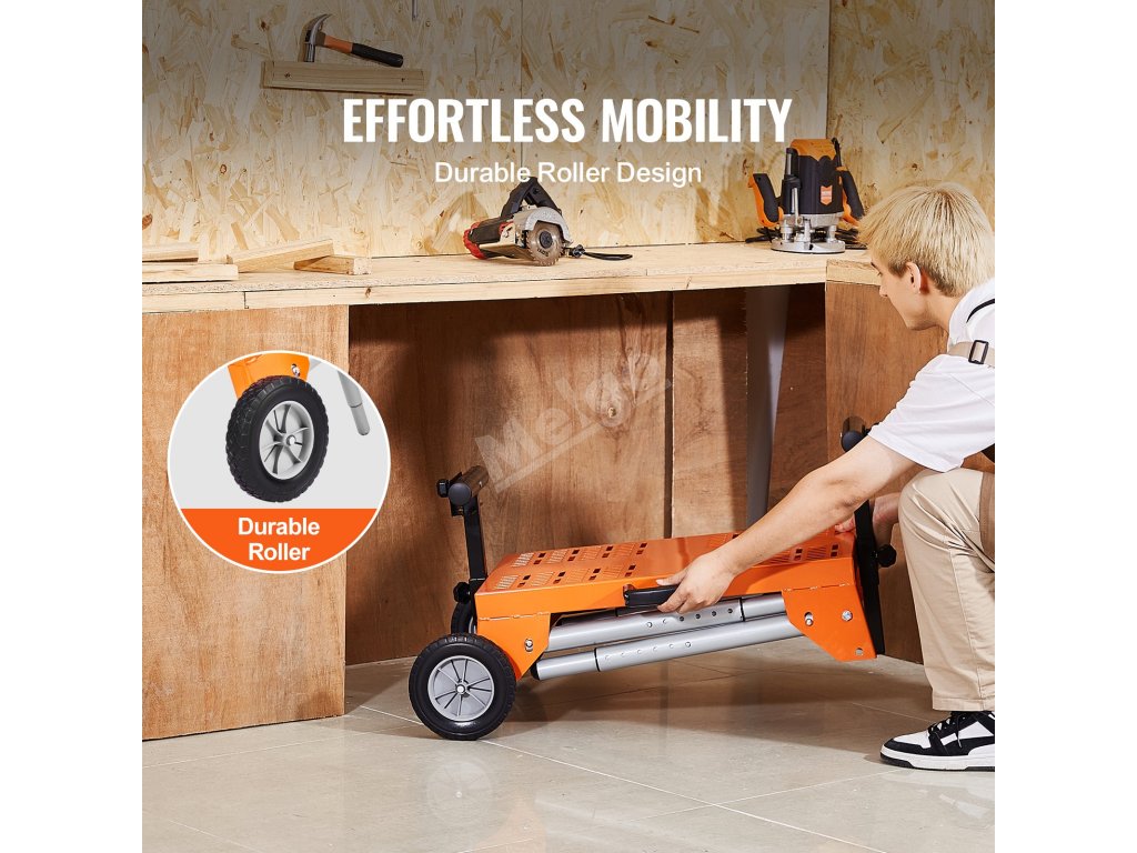 Náš přenosný stojan na pokosovou pilu se v době nepoužívání složí do kompaktní velikosti, takže se snadno vejde do kufru auta, skříně na nářadí nebo do stísněných úložných prostor. Díky kolečkům pro větší pohodlí je přemisťování tohoto stojanu snadné a bez námahy.