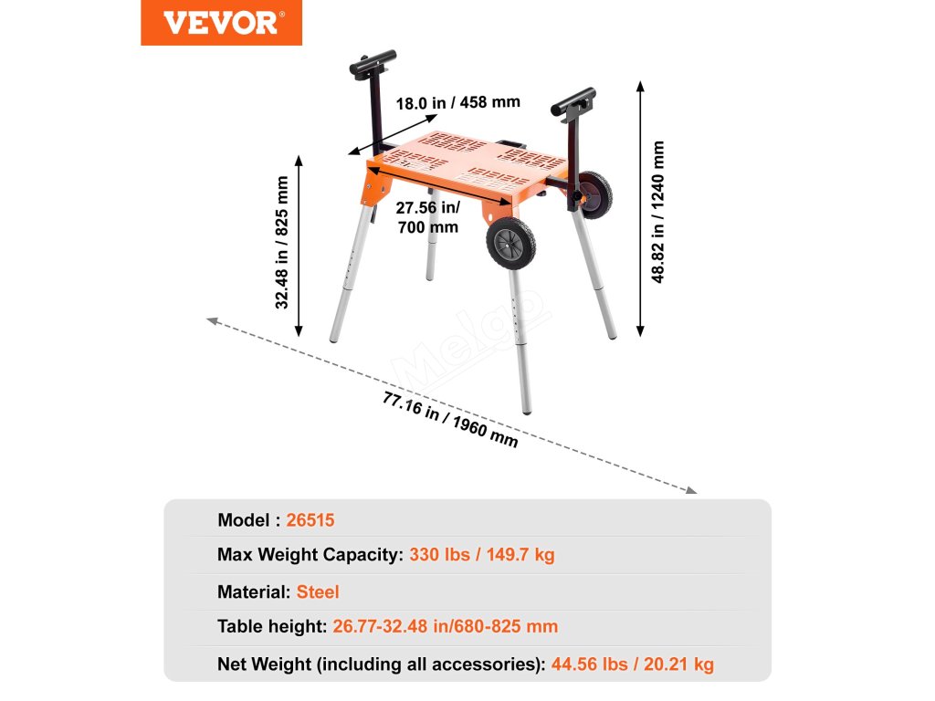 Tento stojan na pokosovou pilu je ideální pro řezání velkých a dlouhých materiálů, nabízí nastavitelnou výšku a délku a umožňuje pohodlnější a komfortnější nastavení pro snadnější a produktivnější práci.