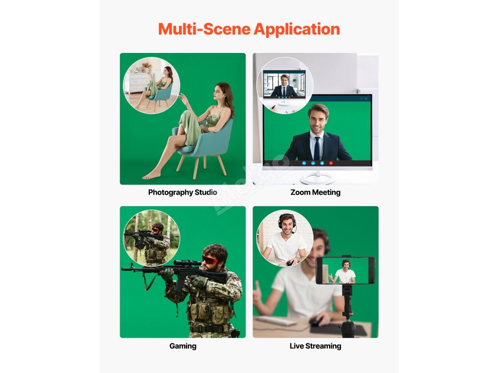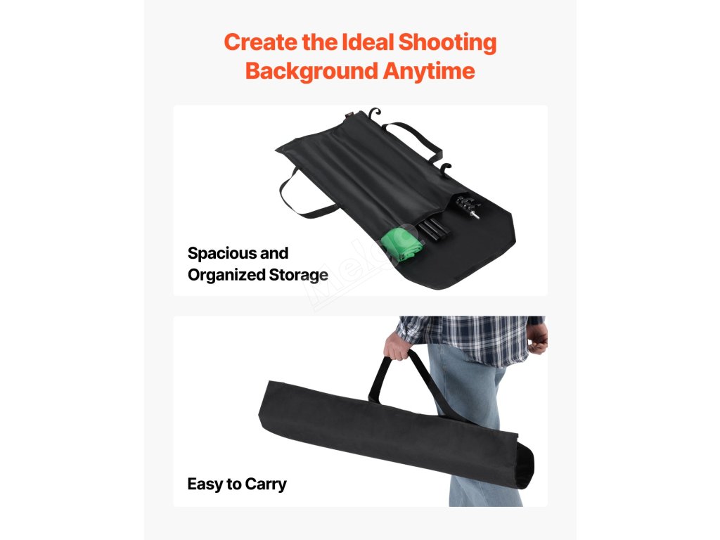 Tento stojan na pozadí má základnu z uhlíkové oceli. Je vybaven zeleným plátnem a nastavitelnou velikostí, takže je ideální pro různé potřeby pozadí, včetně vlogování, televizního vysílání, hraní her, portrétní/produktové fotografie a dalších.