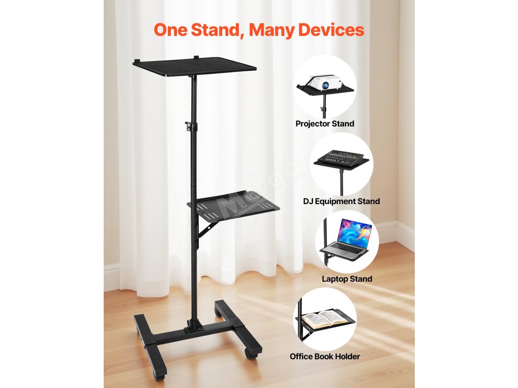 Tento stojan na projektor má konstrukci se dvěma přihrádkami, na které lze současně umístit projektor i notebook. Je také kompatibilní s reproduktory, routery a dalšími zařízeními. Ať už v kanceláři, doma nebo při tvůrčí práci, rozšiřuje využitelný prostor a zvyšuje efektivitu pro pohodlné každodenní používání.
