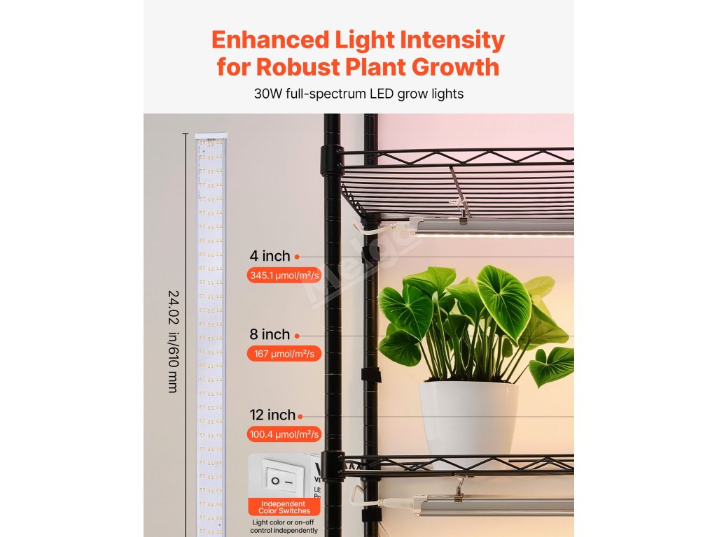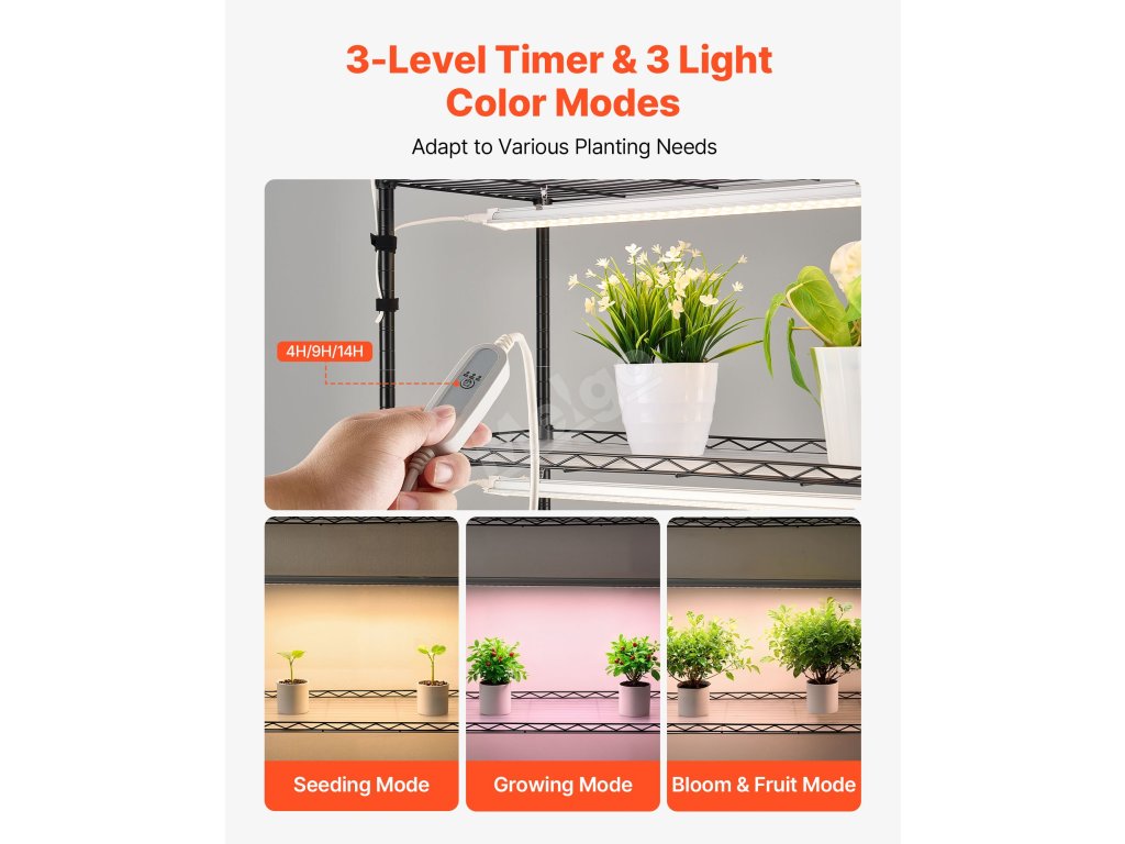 Rostoucí světelná police Obsahuje veškeré příslušenství a srozumitelný návod. Nepotřebujete žádné nářadí ani složité kroky - vše rychle nastavíte a můžete si užívat zahradničení v interiéru bez stresu.