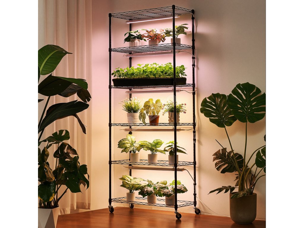 Tento víceúrovňový stojan na rostliny se zabudovaným osvětlením je ideální pro pěstování v interiéru. Nabízí dostatek prostoru pro uložení všech vašich rostlin a vytvoření mini zahrádky přímo u vás doma.
