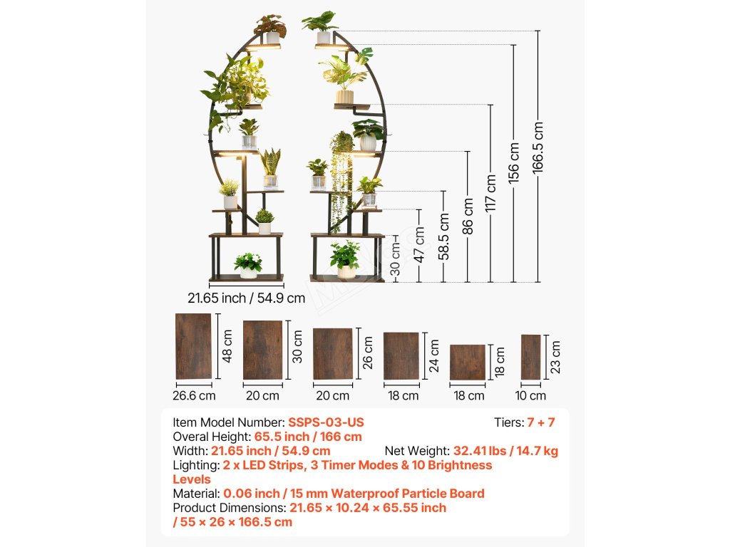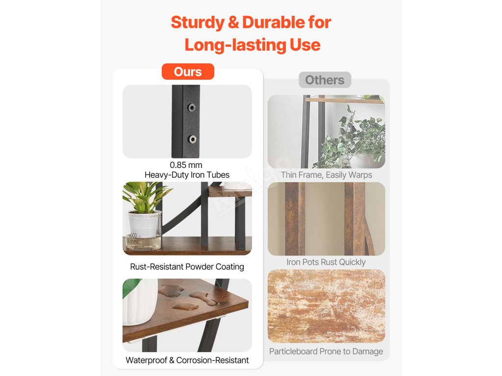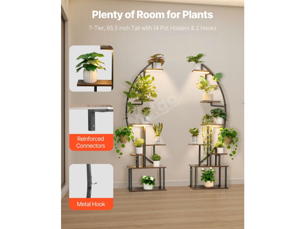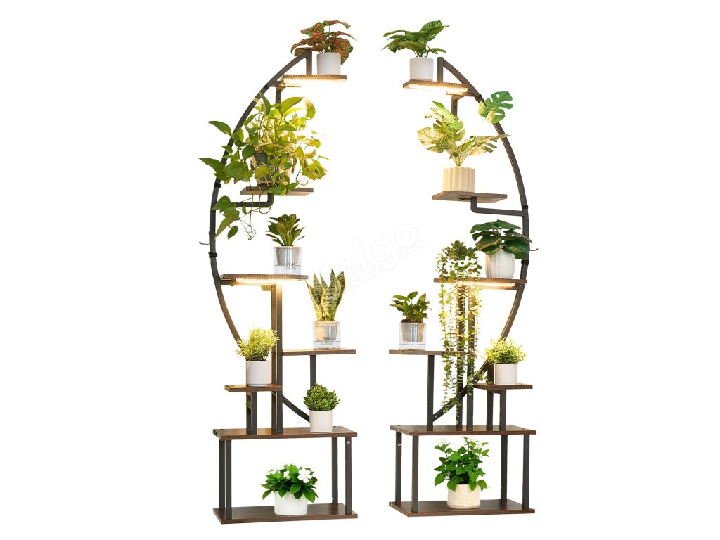Tento osvětlený stojan na rostliny je vyroben z 0,85 mm silných železných trubek a vydrží dlouho. Rám je opatřen práškovým nátěrem odolným proti korozi, který zvyšuje jeho odolnost. Silné dřevotřískové police s voděodolnou povrchovou úpravou odolávají kroucení, praskání nebo korozi. Připevněné upevňovací prvky a popruhy proti překlopení