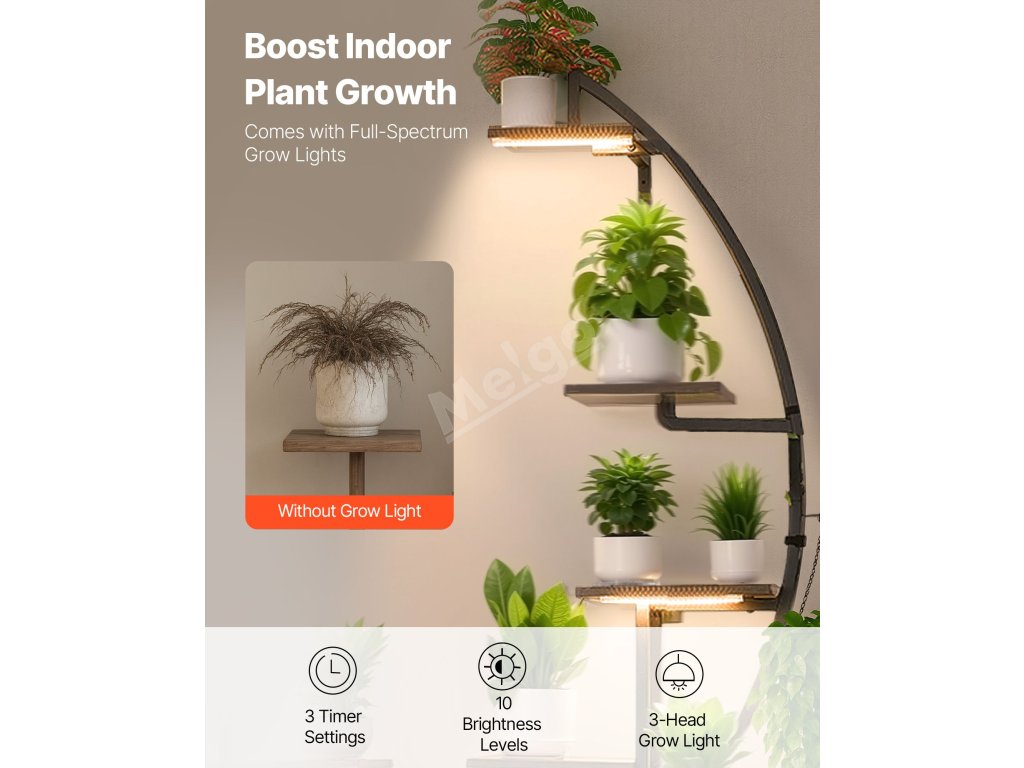 Tento stojan na pokojové rostliny je vybaven třemi plnospektrálními pěstebními světly s 10 úrovněmi jasu a 3 možnostmi časovače. Zajistí vašim rostlinám ideální světlo v každé fázi růstu. Osvětlení můžete snadno přizpůsobit potřebám svých rostlin - nemusíte je nosit ven za slunečním světlem.