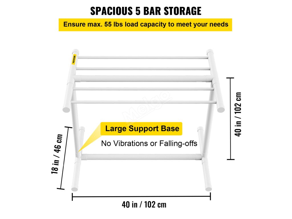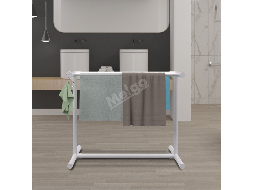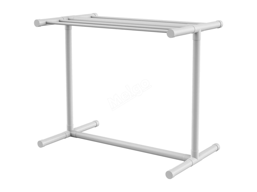 Stojan na ručníky 5 tyčí bílý volně stojící pvc, 8 klipů, síťka