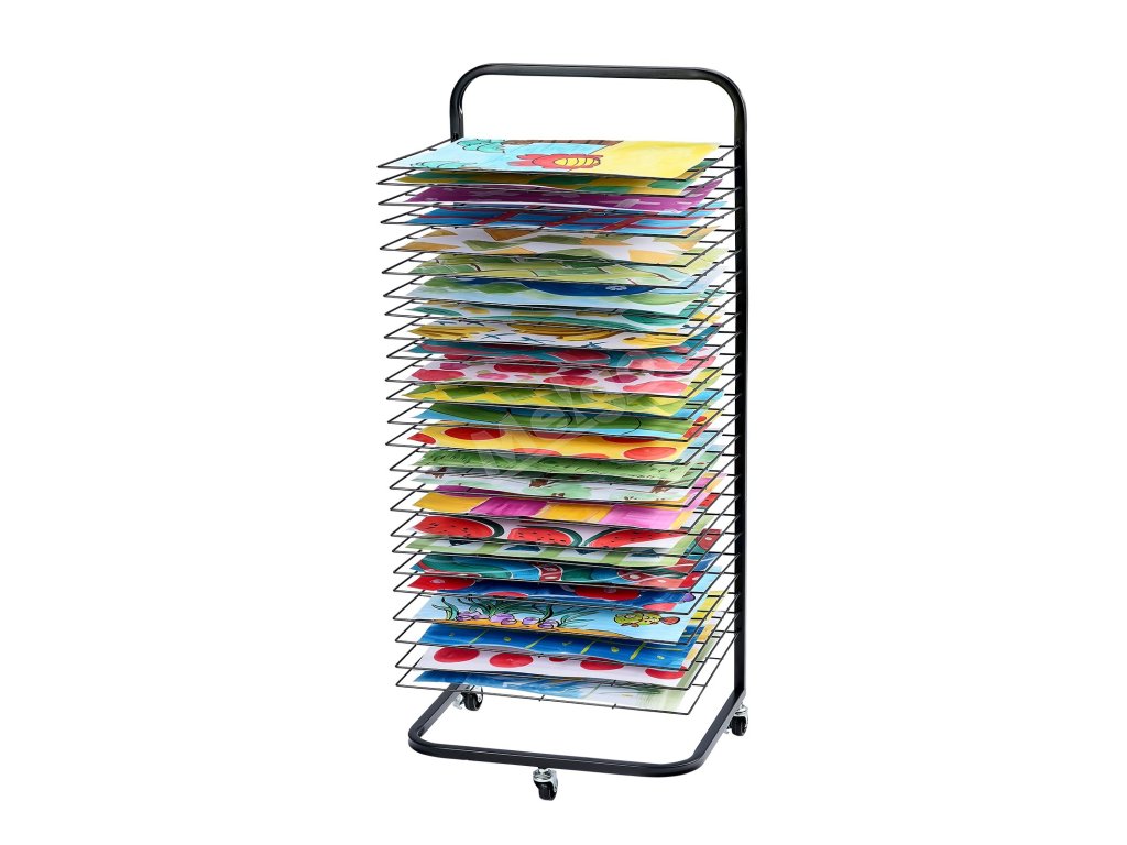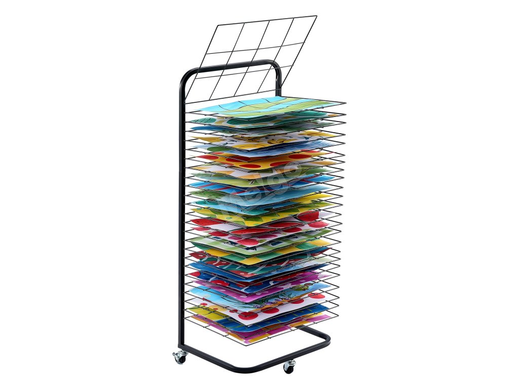 Stojan na sušení maleb 25 polic 17×13×39.4 in, uzamykatelná kolečka