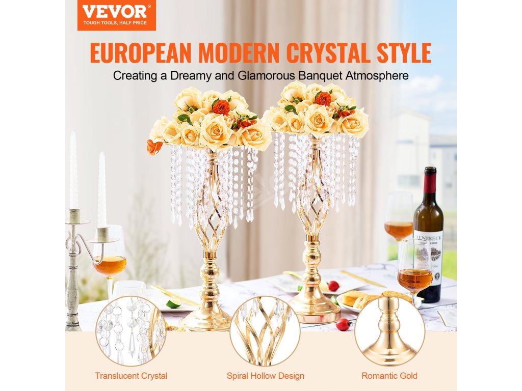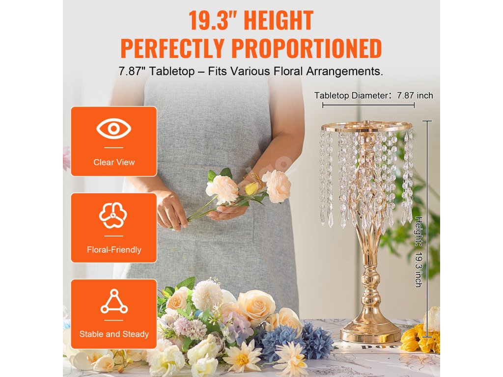 Stojan na svatební květiny 12 ks, kovový, zlatý, 49 cm/19.3” na stůl