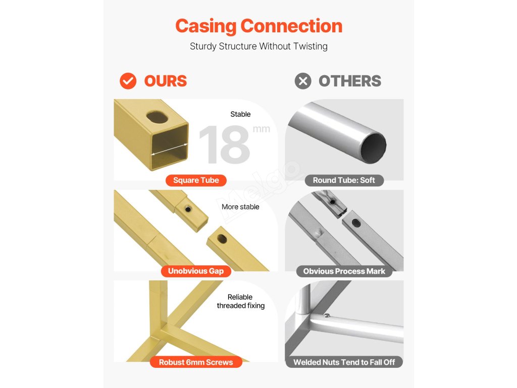Tento třídílný zlatý svatební obloukový stojan na pozadí o rozměrech 6 x 2,6 stopy, 5 x 2,2 stopy a 4 x 1,7 stopy s gázou dodává svatbám romantiku a eleganci. Pro hosty se stane ústředním bodem hodným fotografování. Modernizovaný odolný kovový rám o rozměrech 18 x 18 mm zajišťuje stabilitu a trvanlivost.