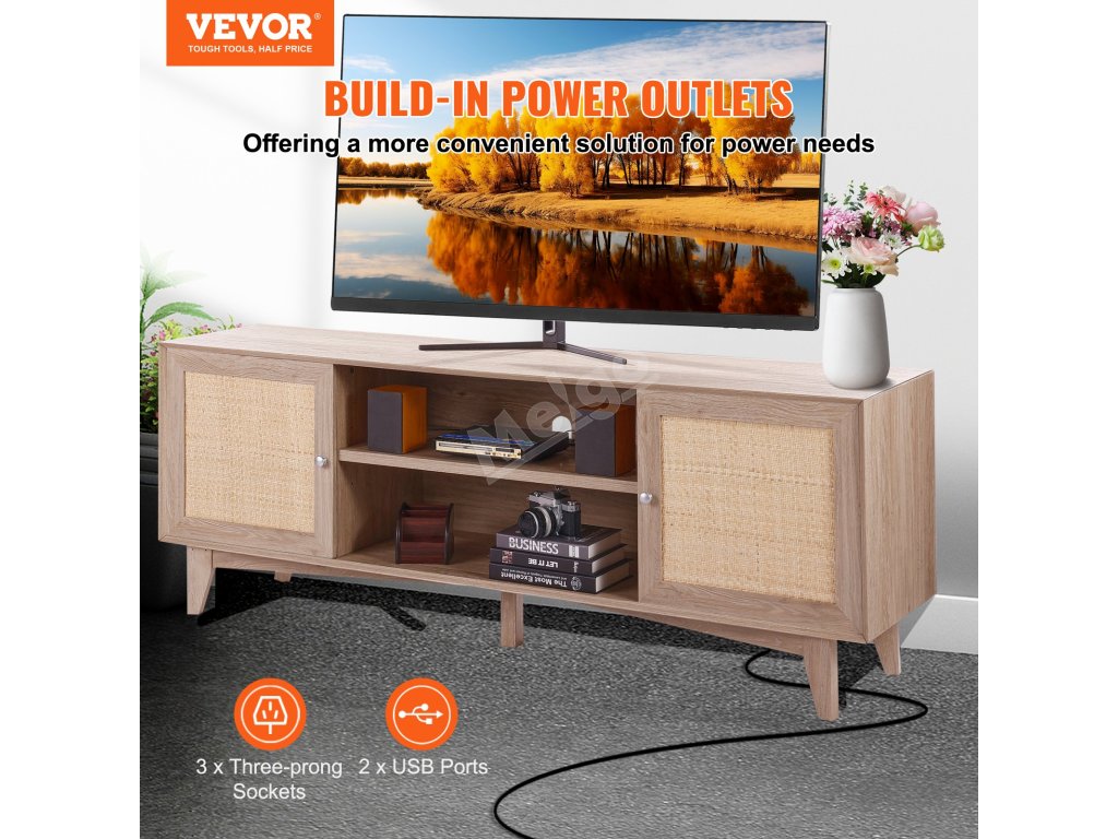 Tento ratanový televizní stolek má ve středové polici integrovanou elektrickou zásuvku pro snadné připojení napájení a vedení kabelů, což zvyšuje pohodlí ve vašem obývacím pokoji.