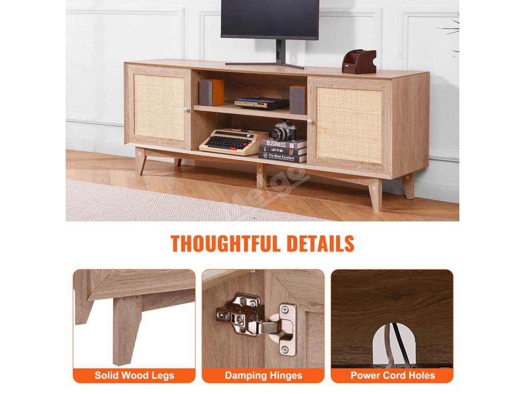 Deska stolu o rozměrech 165 x 50 cm nabízí prostor pro televizor o úhlopříčce 191 cm a unese až 68 kg. Pokud se ratanové zábavní centrum nepoužívá pro televizor, je ideální také pro vystavení dekorativních předmětů.