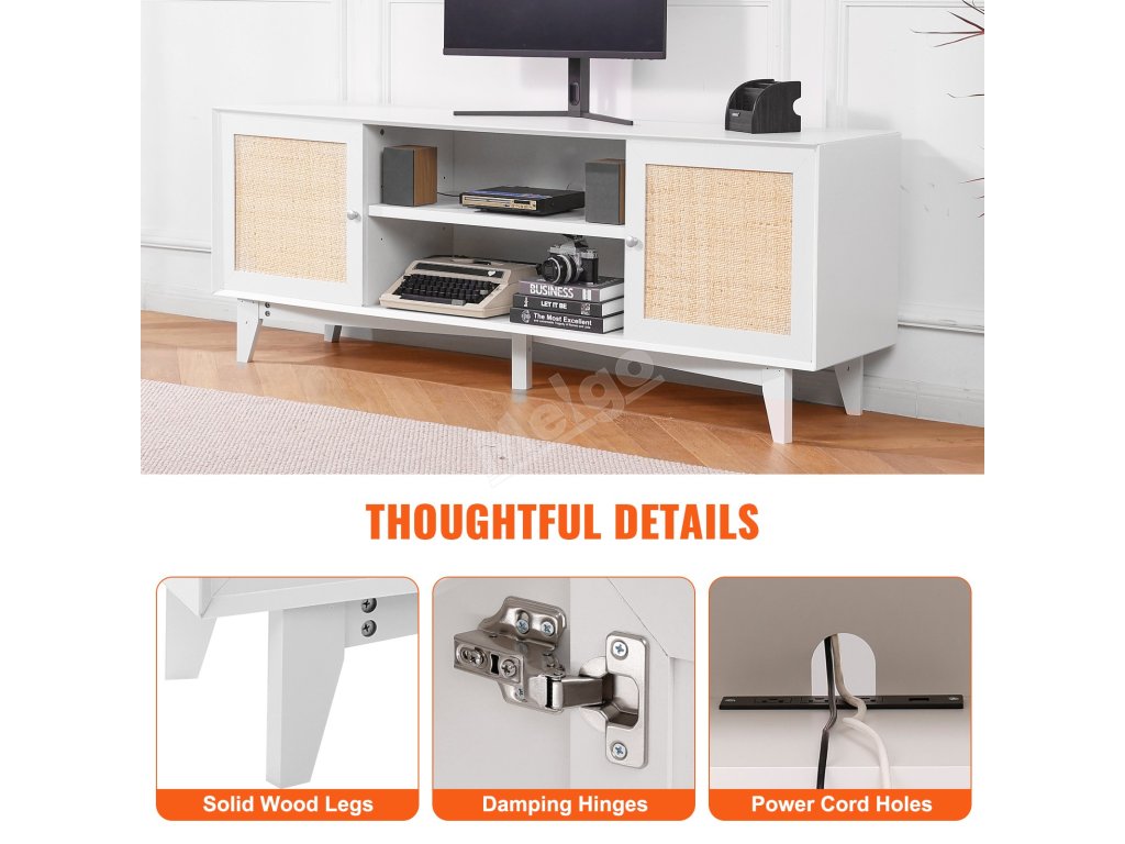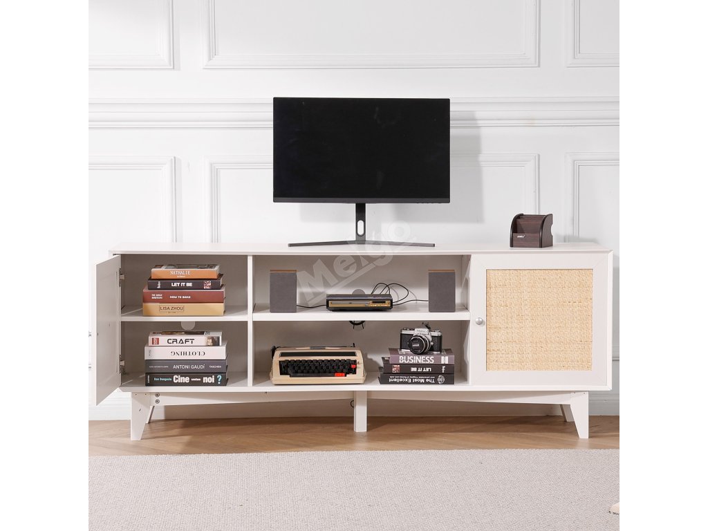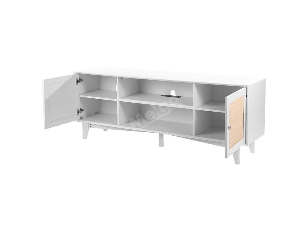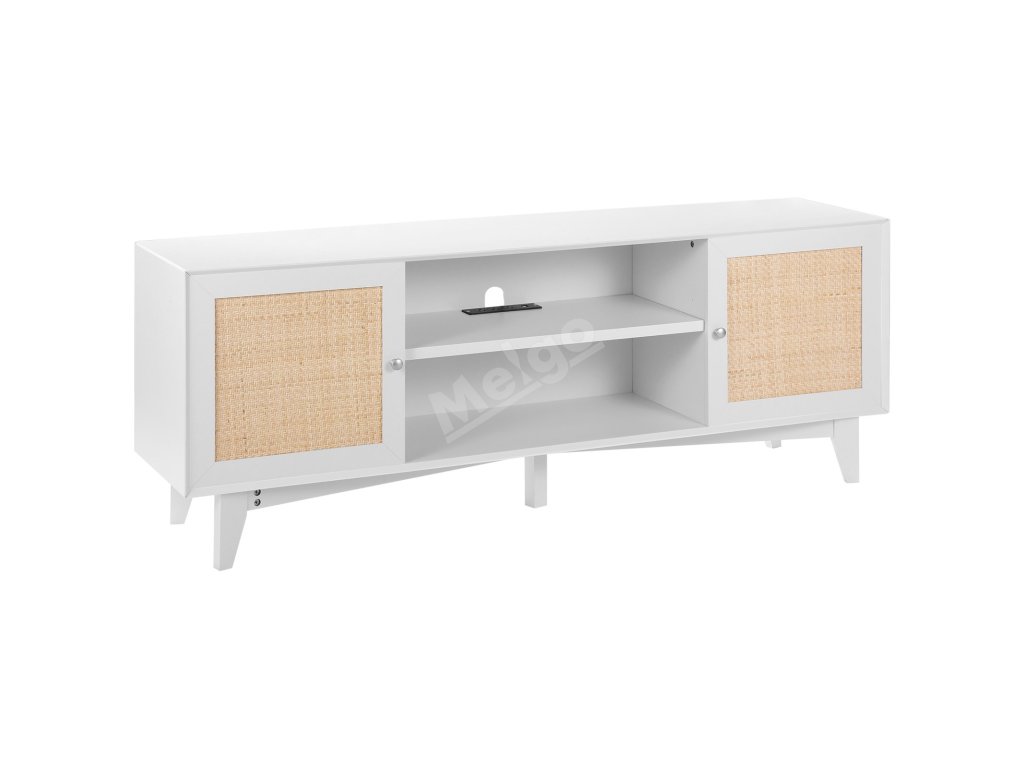 Stojan na televizi z ratanu, skříňka, šířka 191 cm, boho, bílá