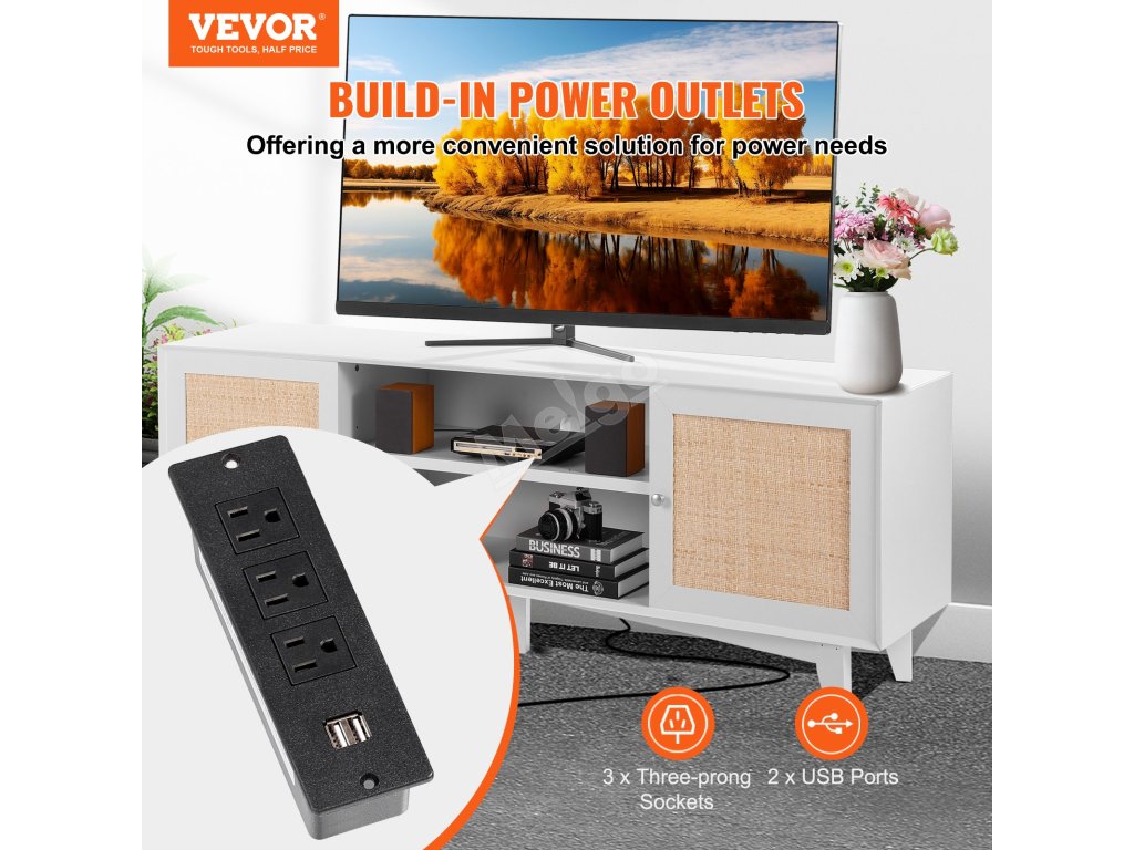 Tento ratanový televizní stolek má v prostřední polici integrovanou zásuvku pro snadné připojení napájení a vedení kabelů, což zvyšuje pohodlí ve vašem obývacím pokoji.