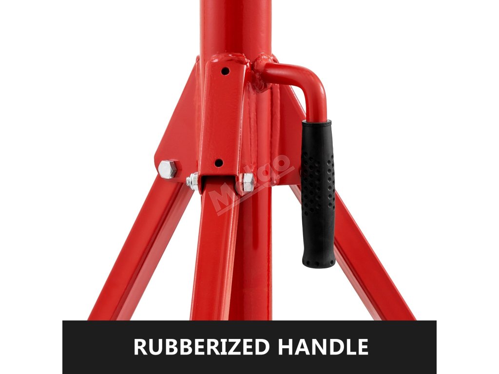 Přívodní šroub je odolný proti korozi. Tělo tohoto zvedáku je vyrobeno z prvotřídní oceli, takže je odolnější. Výška je nastavitelná (od 71 cm/28 cm do 131 cm/51,5 cm).