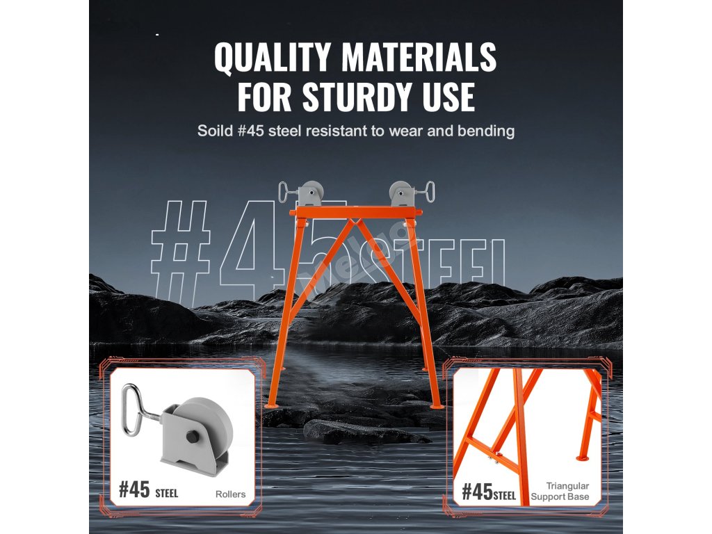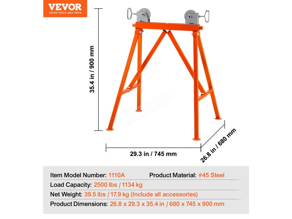 Válečkový držák do trouby VEVOR je spolehlivým společníkem při projektech souvisejících s troubou. Díky pevné stabilitě schopné zvládnout 2500 LBS těžkých břemen, nastavitelné rozteči válečků, všestranné funkčnosti a robustní konstrukci zaručuje přesnost a jednoduchost při zpracování trubek.